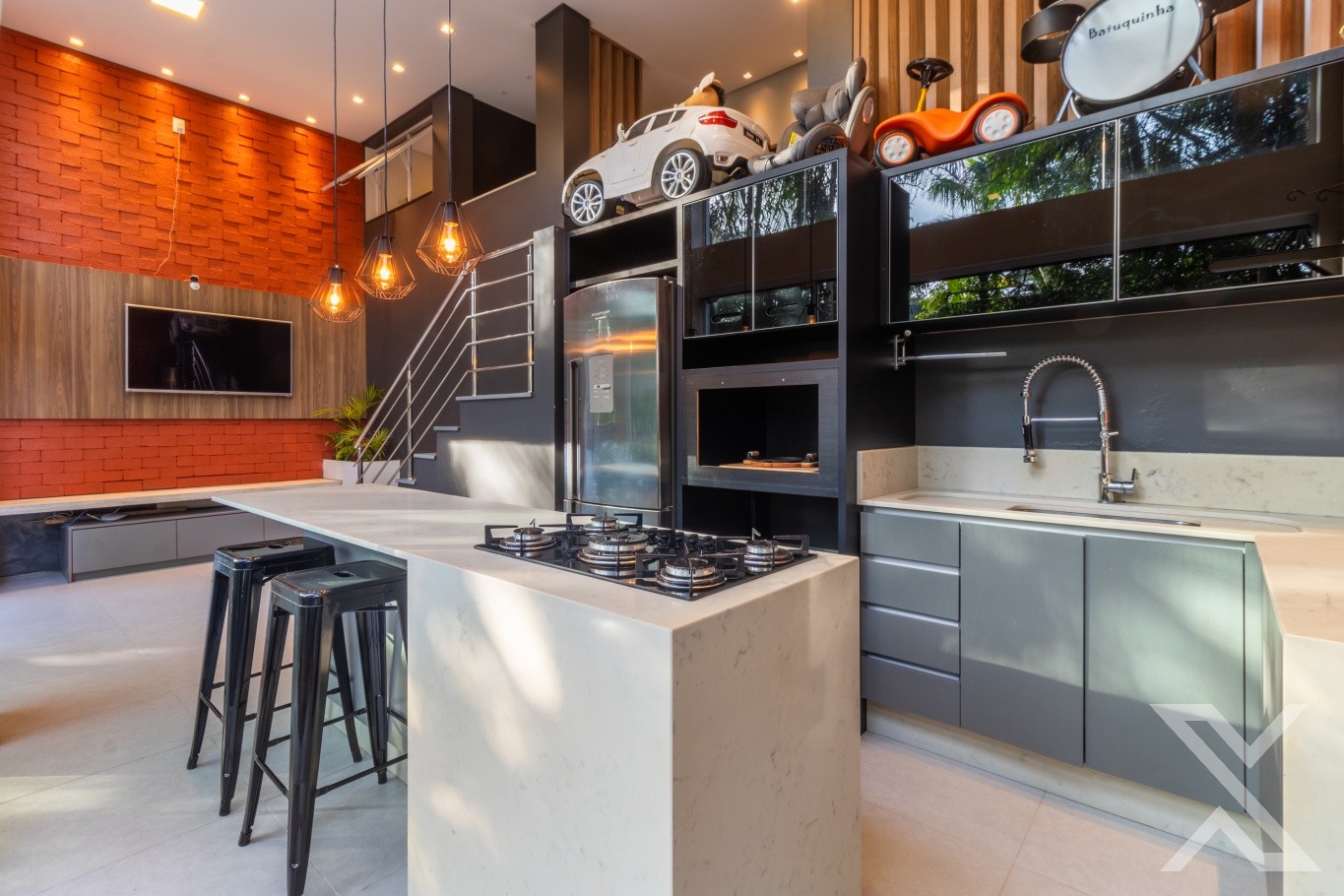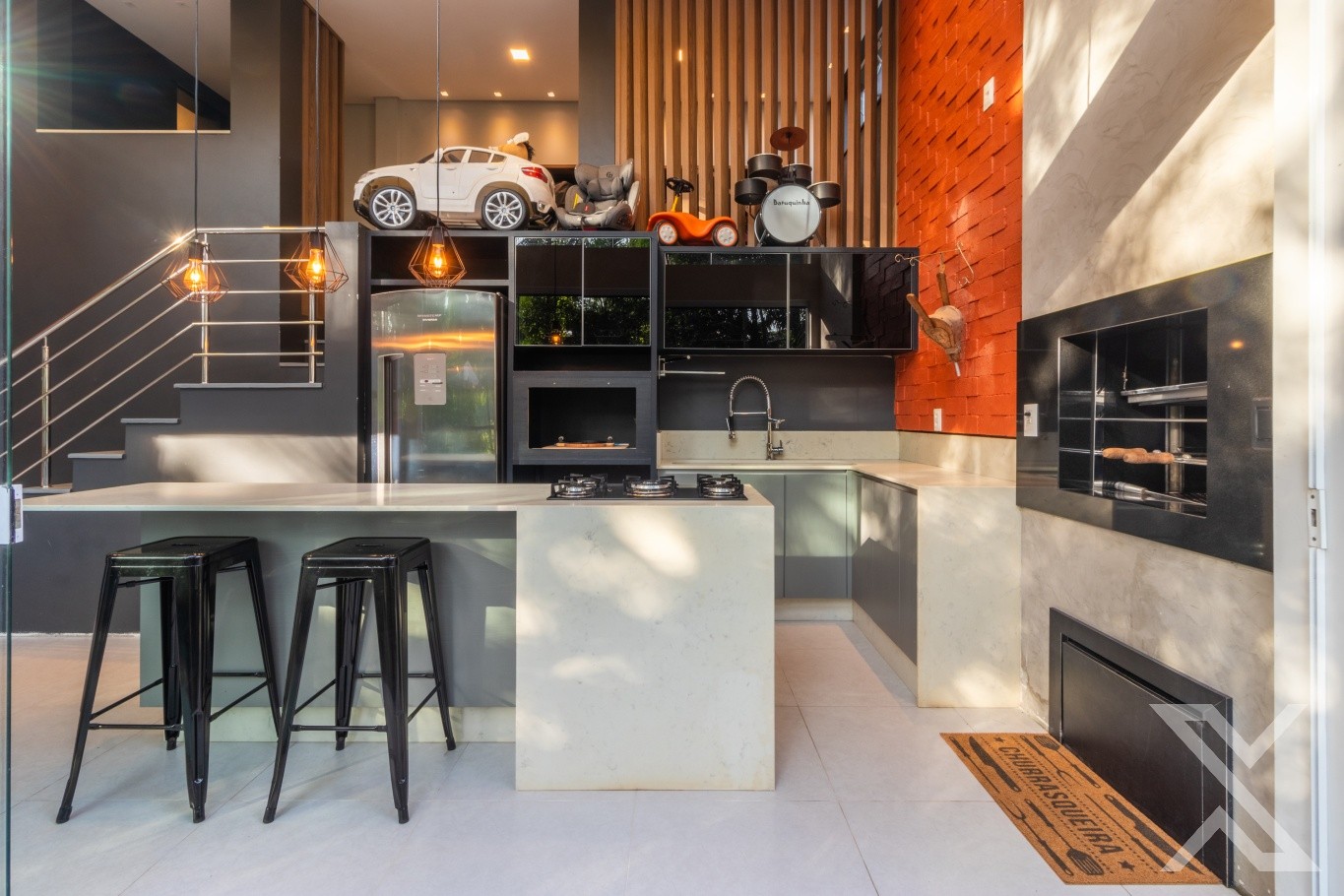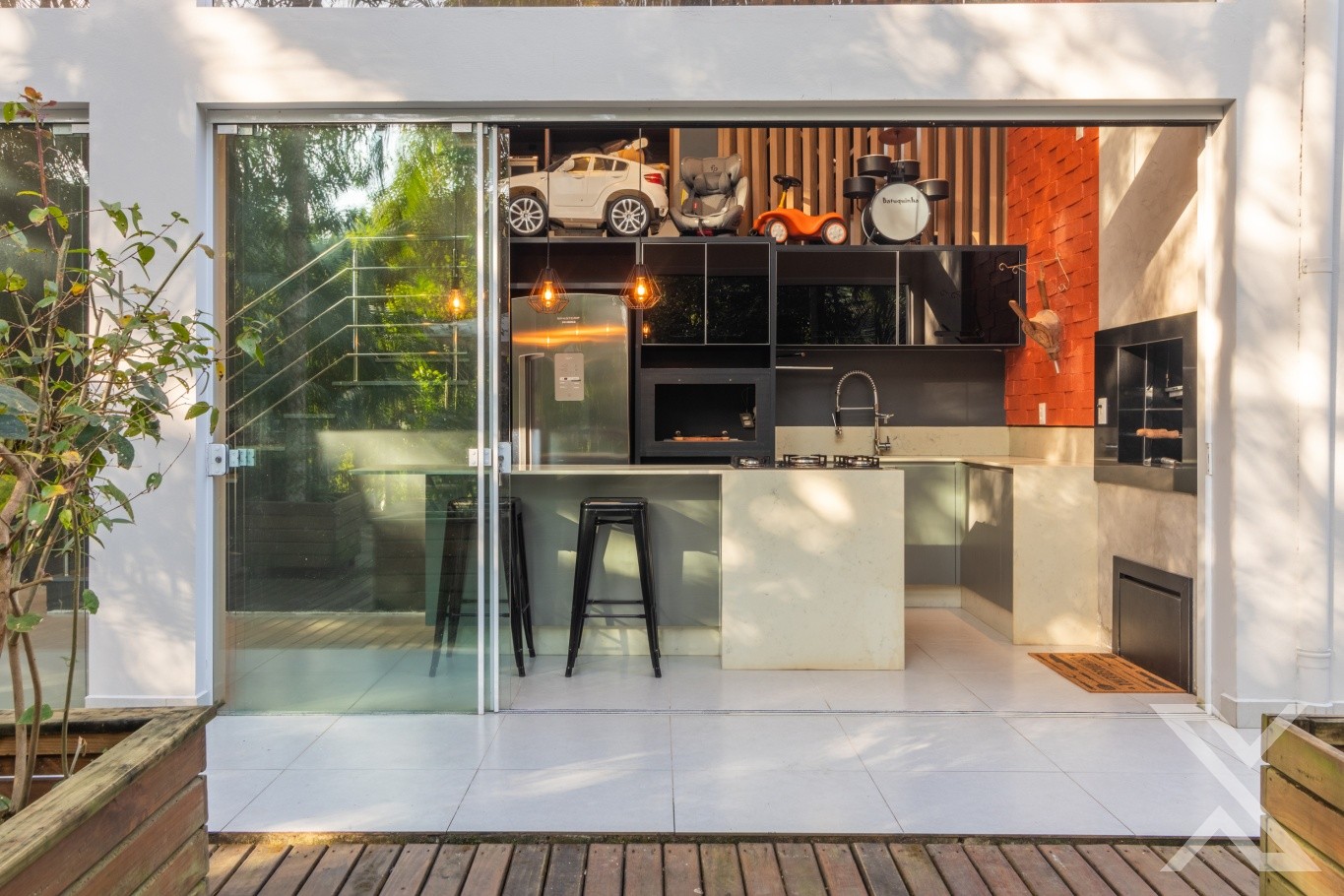 Ambientes amplos e bem distribuídos, com sala, cozinha com despensa, área de serviço, além de uma excelente varanda gourmet com churrasqueira, e um deque perfeito para receber amigos e relaxar. Conta ainda com depósito, ideal para organização extra.