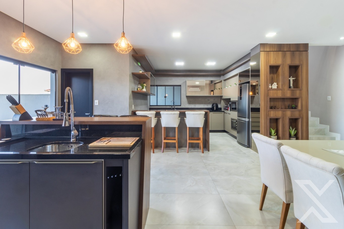 Ambientes amplos e integrados, com sala de estar, sala de jantar, cozinha funcional, um espaço gourmet com churrasqueira e piscina perfeita para relaxar ou receber amigos com conforto.