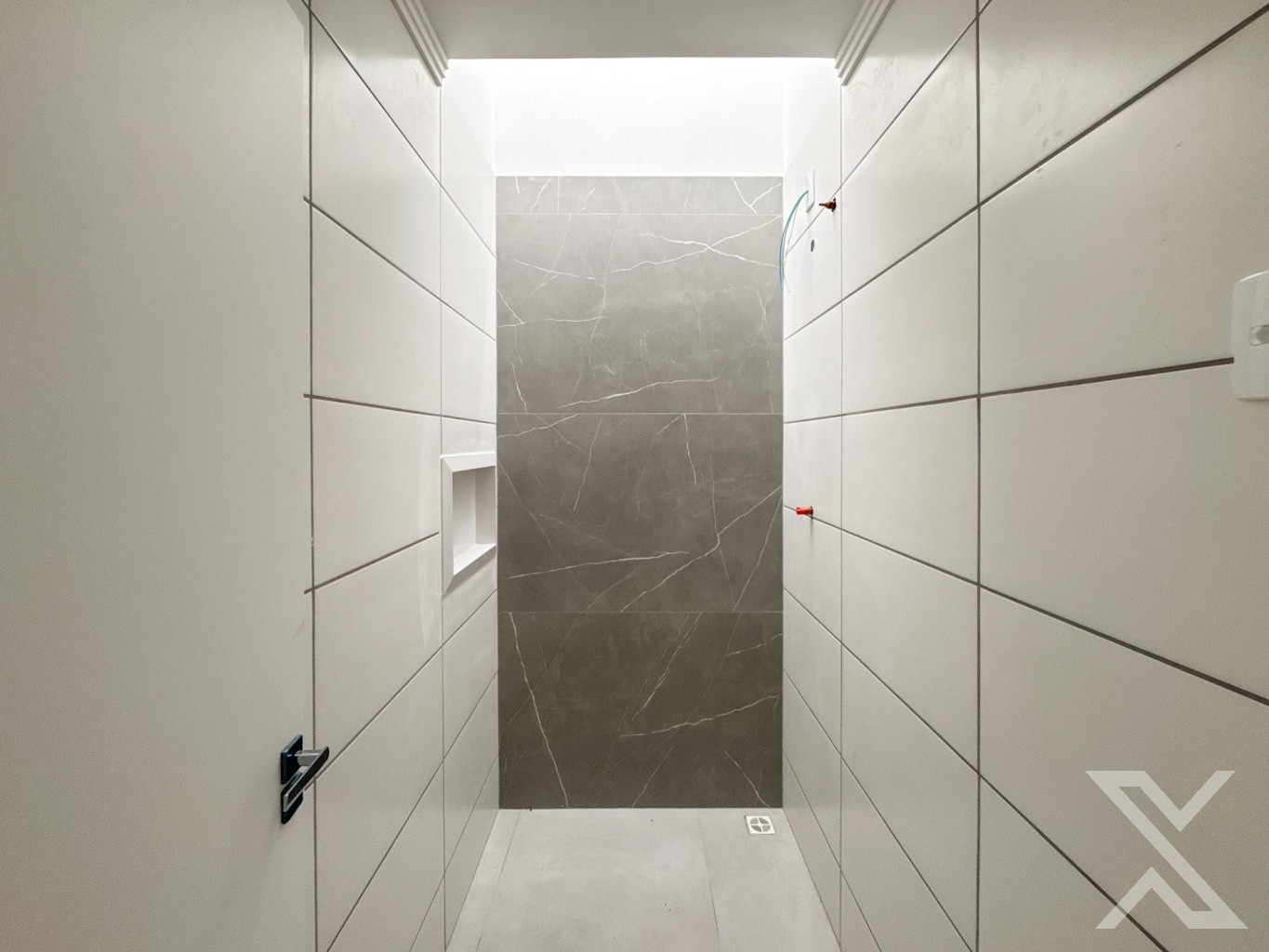 Acabamentos de alto padrão com o rebaixo em gesso, massa corrida, portas brancas, granito nas soleiras, porcelanato, portão em alumínio, preparação para ar condicionado split, e conexão para tv a cabo e internet.