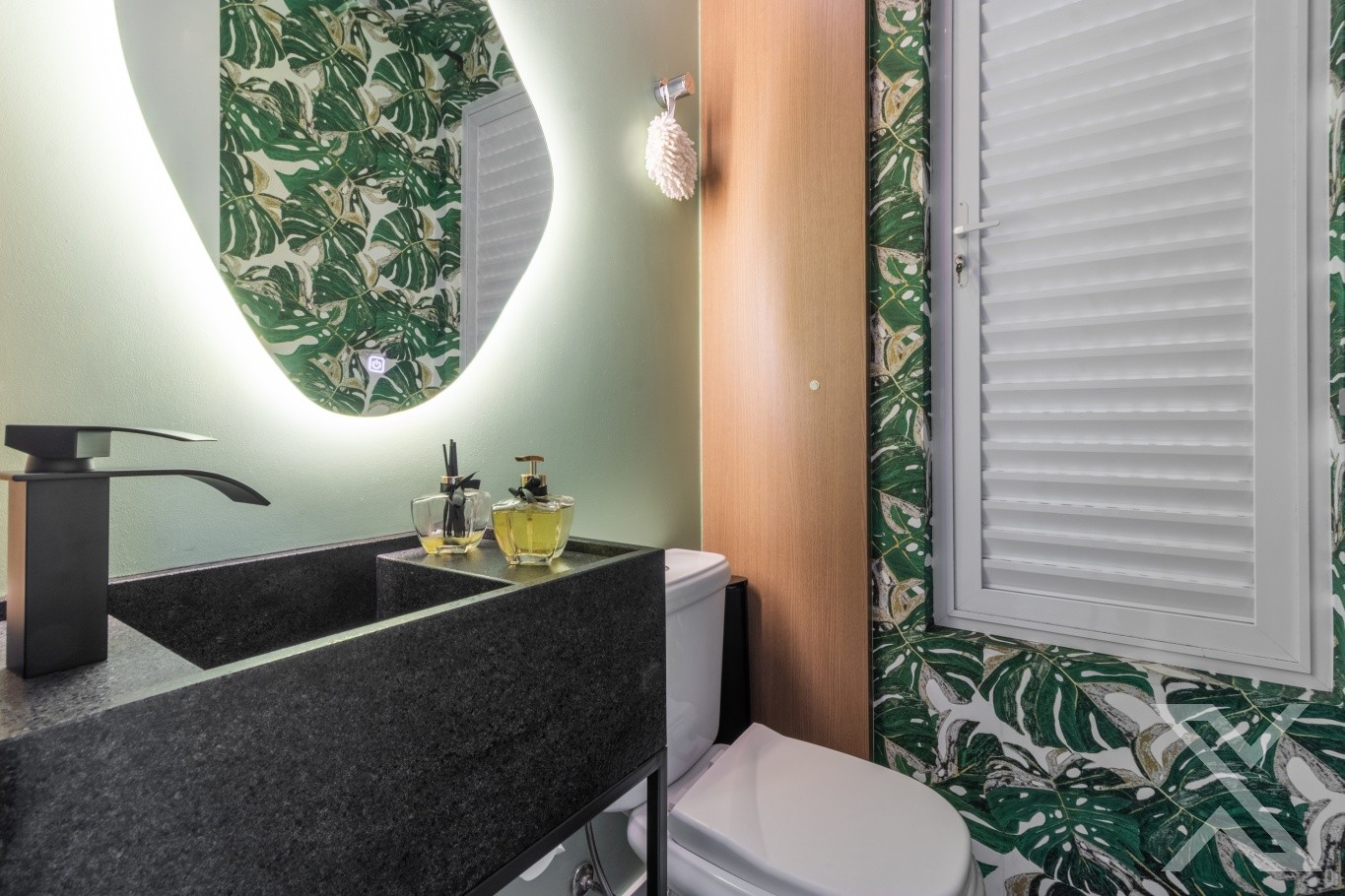 Revestimentos em porcelanato e laminado, forro rebaixado em