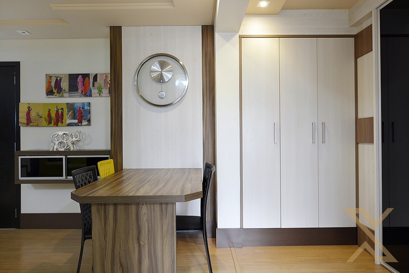 Suíte, com armários, móveis, closet, ar-condicionado.