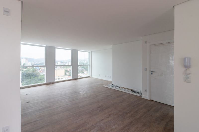 Excelente acabamento, Piso vinílico, Portas Laqueadas, Teto rebaixado em Gesso, Fachada com pele de vidro teto/chão com abertura Maxim-ar. Vidros laminados, refletivos..