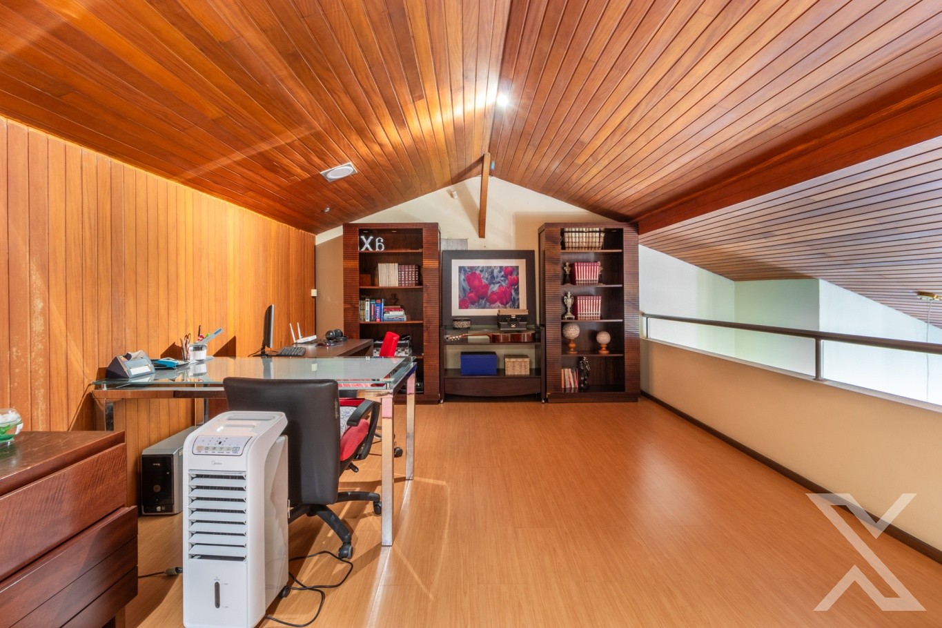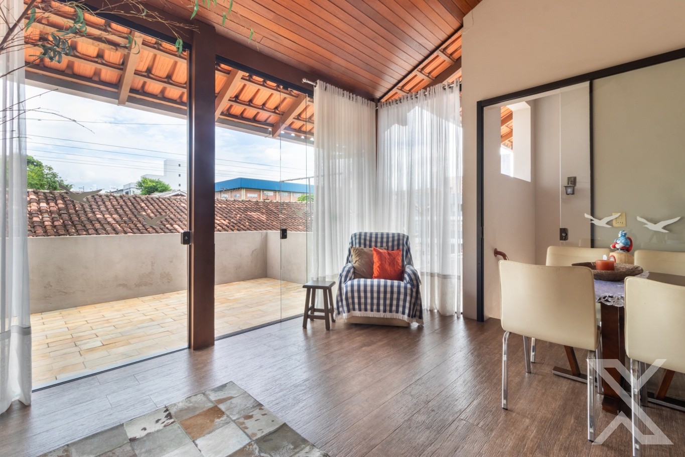 Salas amplas com pé direito alto proporcionando conforto e boa ventilação.