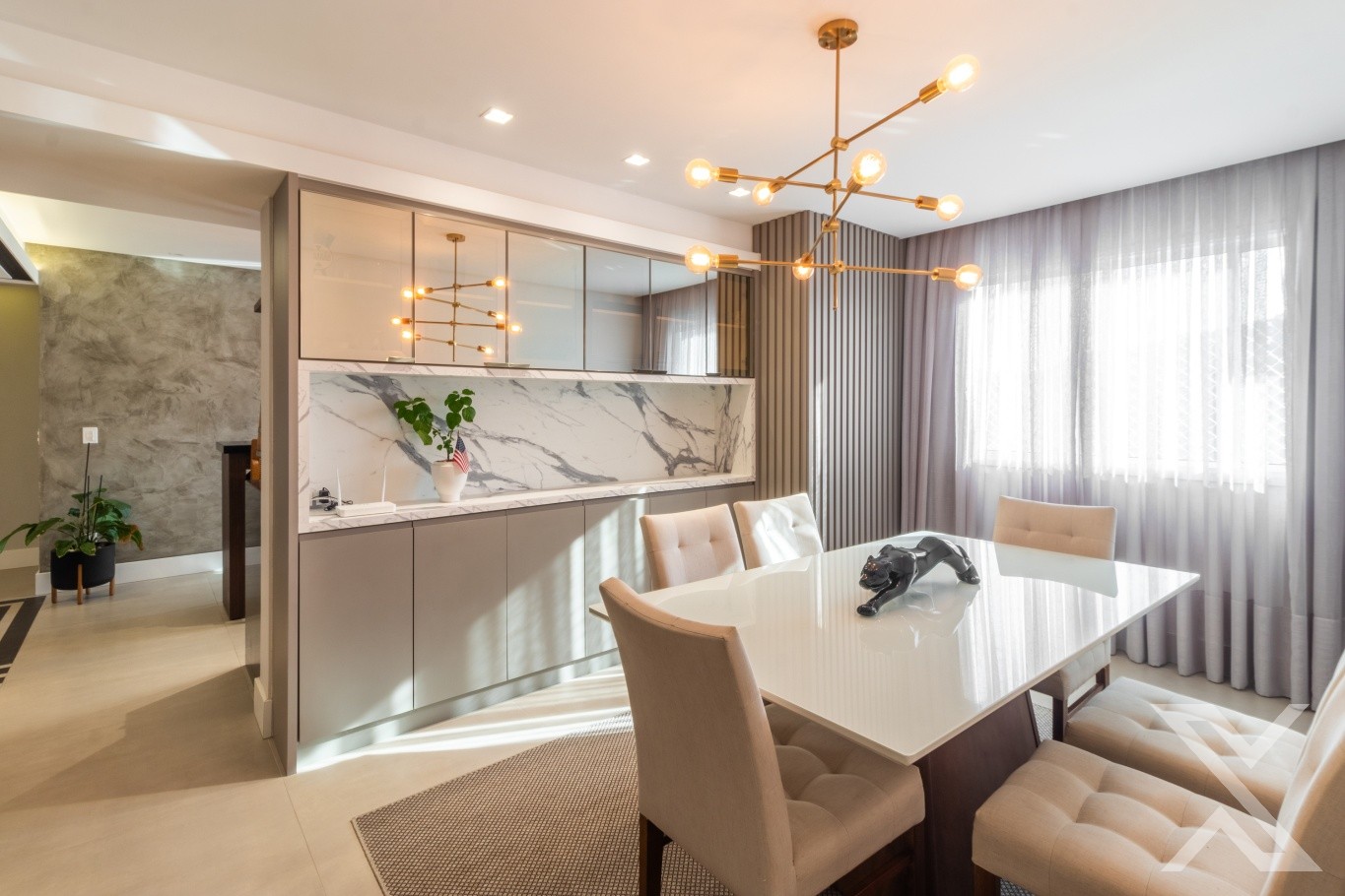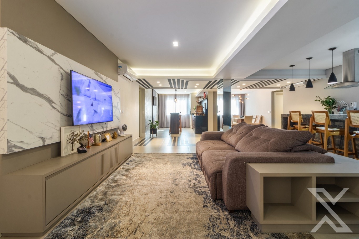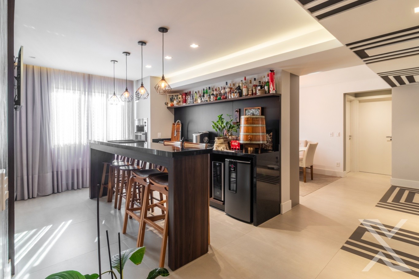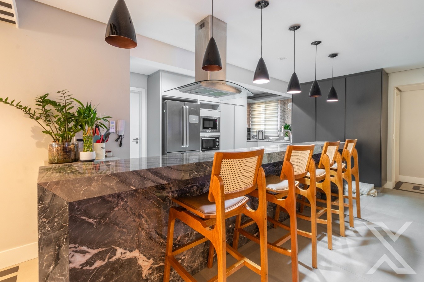 • Espaços integrados: living moderno com cozinha planejada e churrasqueira a gás, perfeito para momentos em família e recepções.