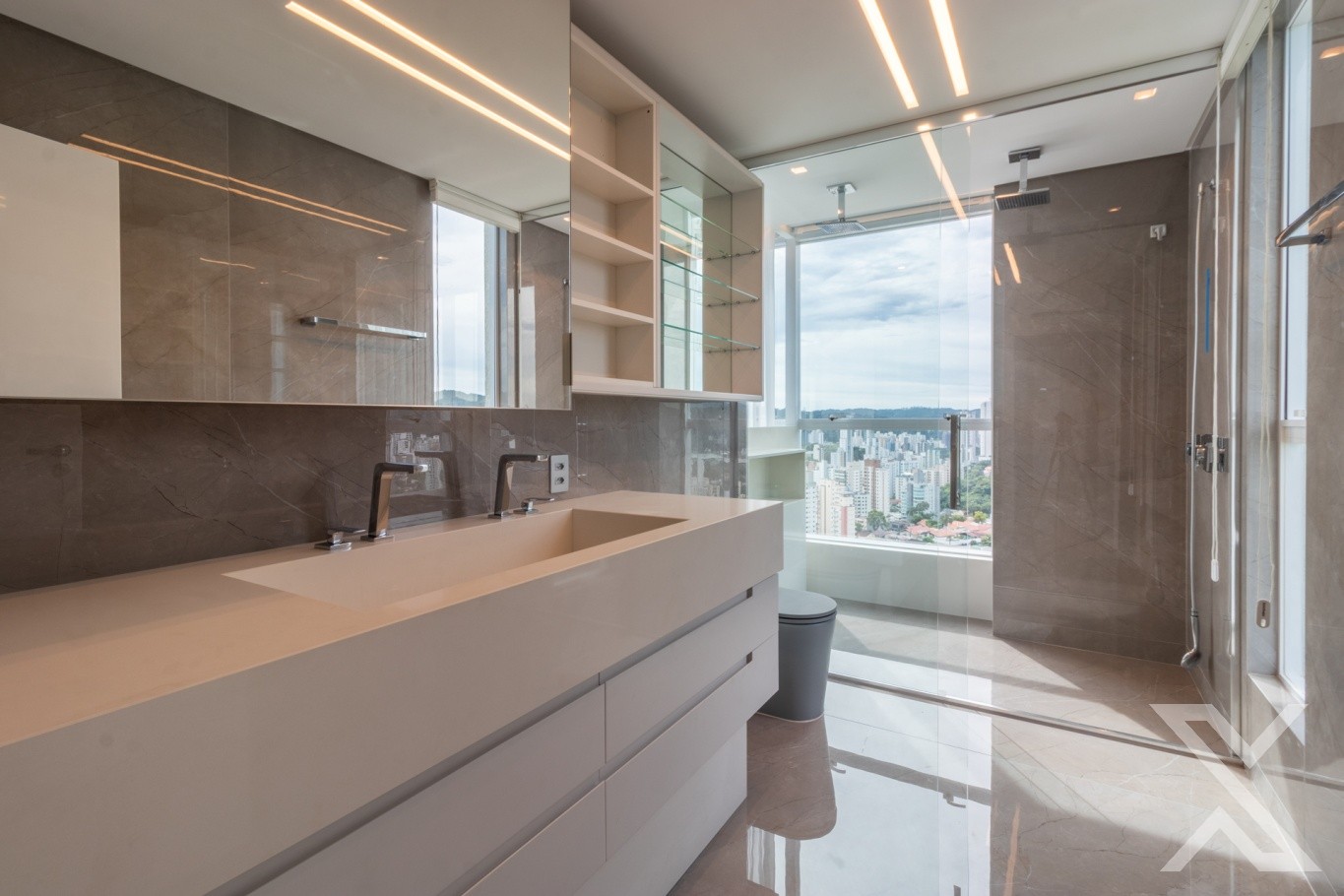 Com móveis e portas laqueada, eletrodomésticos de alta qualidade, automação em todas as cortinas e persianas, essa cobertura te oferece o máximo em elegância e conforto.