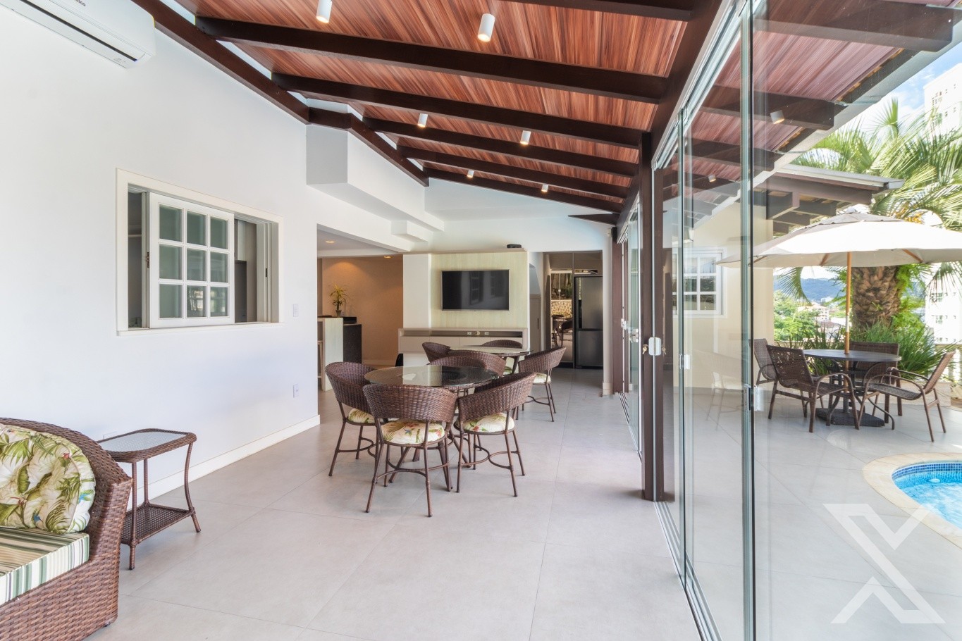 ● área de festas com piscina aquecida.