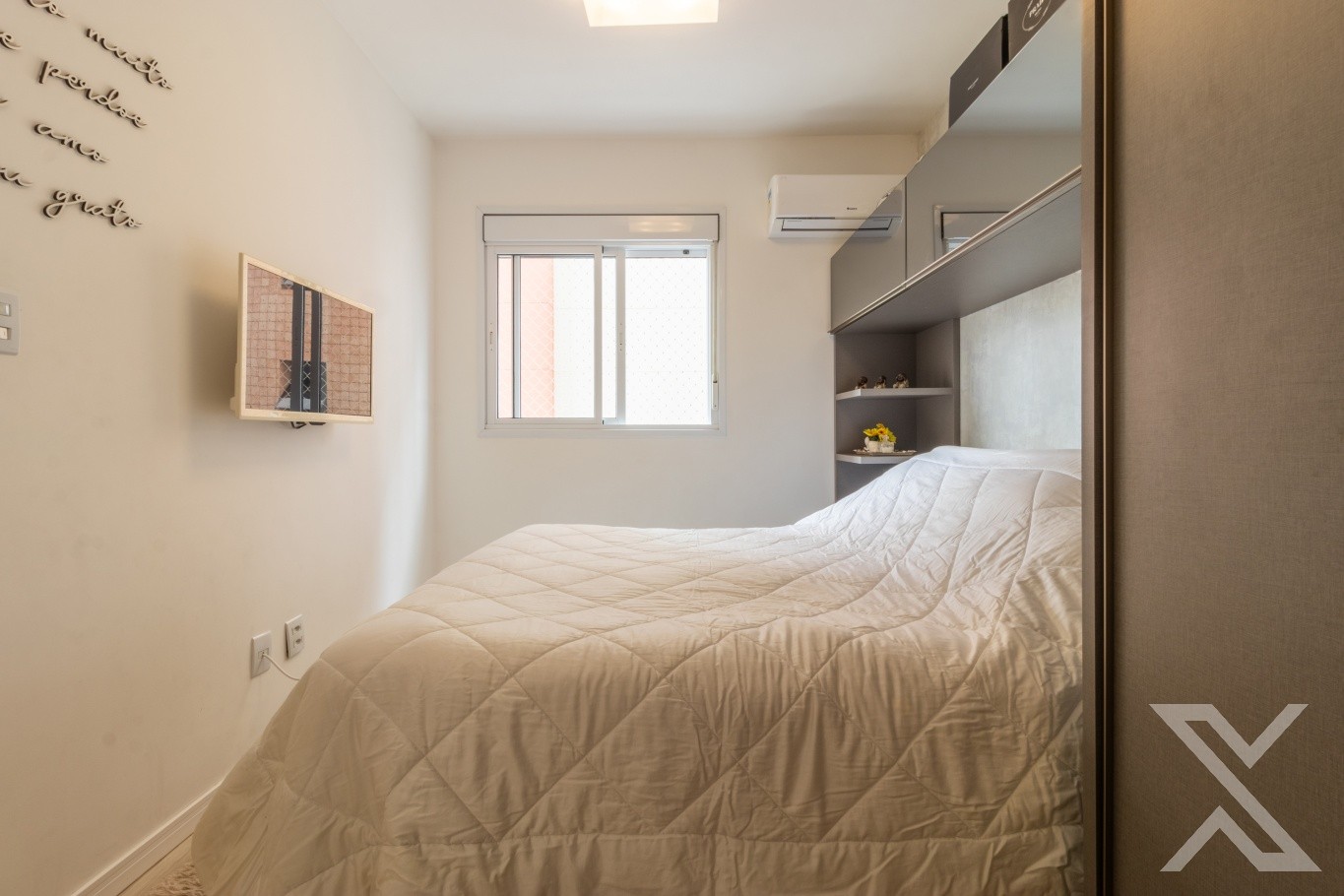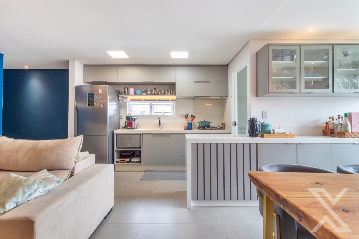 Com 82,71m² privativos o imóvel contém 3 suítes sendo 2 demi e lavabo. Possui sala, living, cozinha e a sacada com churrasqueira integrados, proporcionando um espaço amplo e confortável. Para completar, ele recebe uma ótima incidência solar, com sol da manhã nos quartos e sol da tarde na sala. Além disso, é semi-mobiliado permanecendo móveis embutidos na cozinha, sala, banheiros e armários nos quartos.