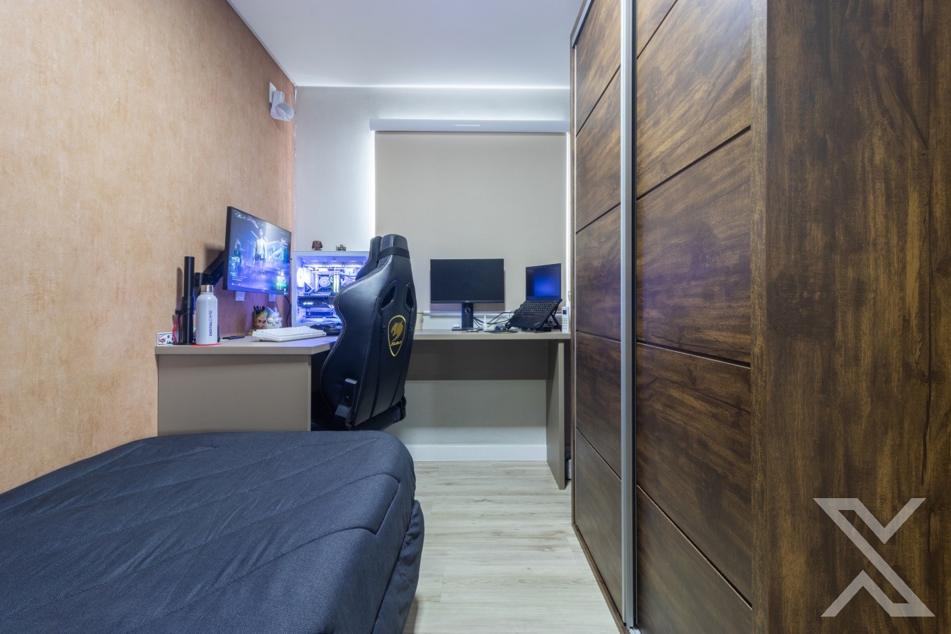 O condomínio possui salão de festas com churrasqueira, playground, piscina e academia.