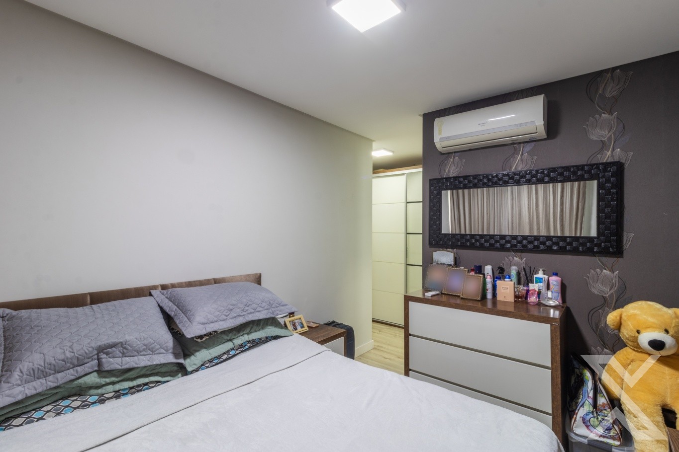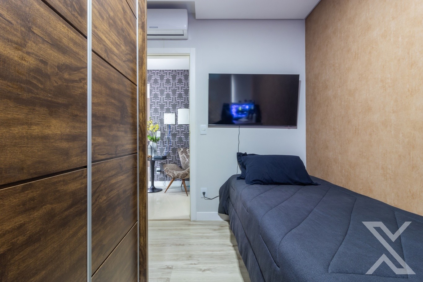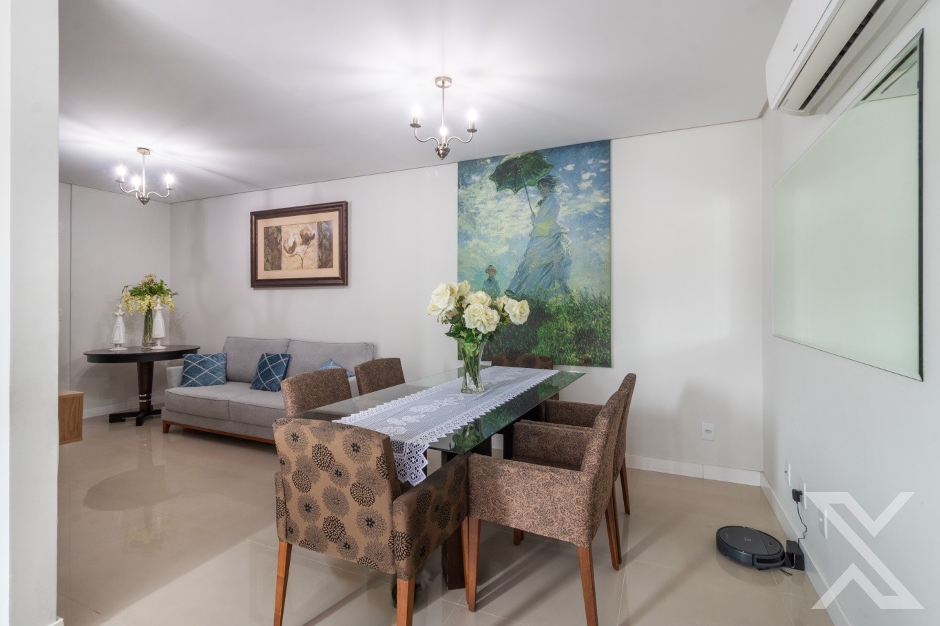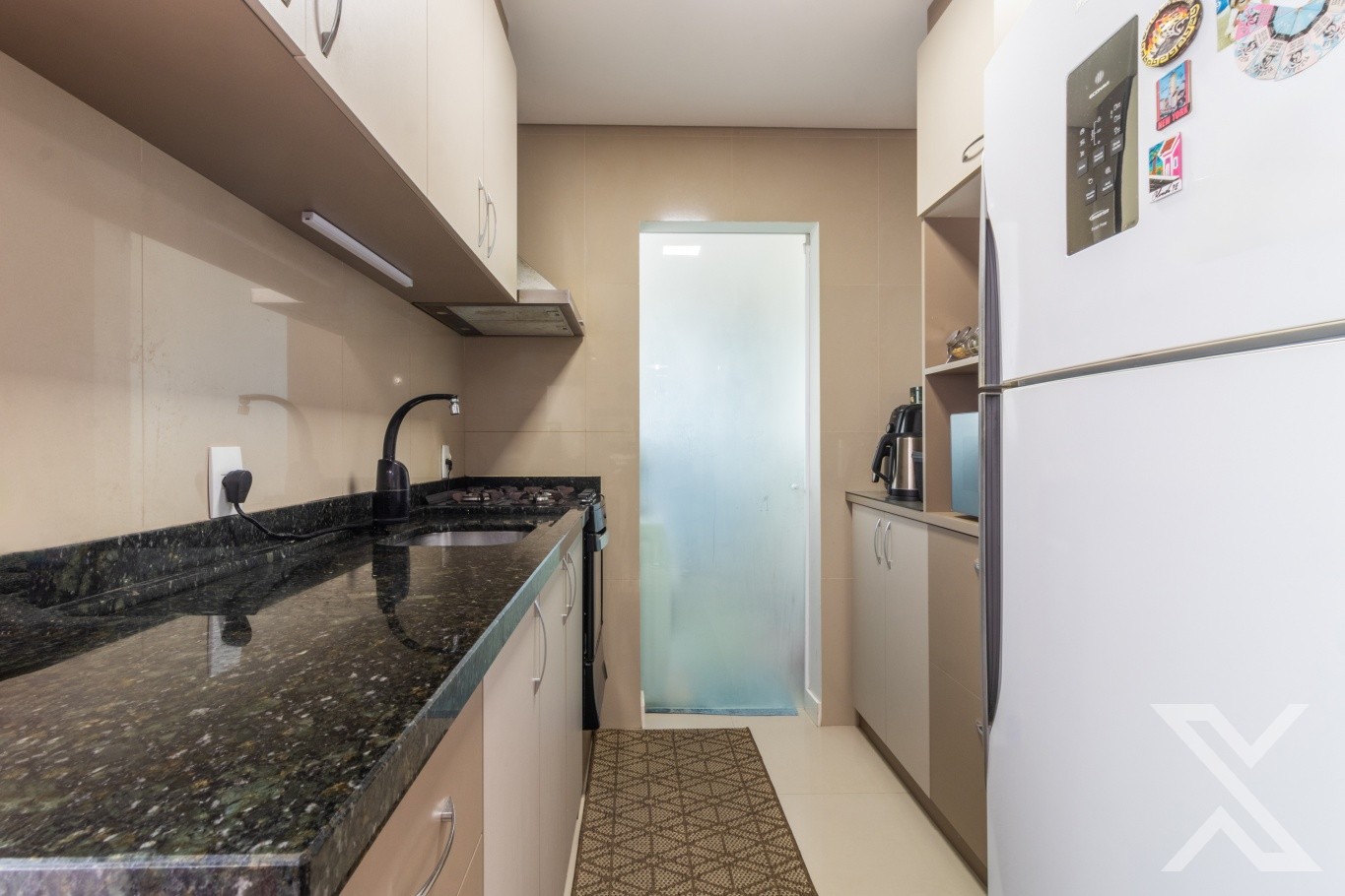 O apartamento possuí 03 dormitórios sendo 01 suíte, sala de estar e jantar, cozinha, churrasqueira a carvão, banheiro social, área de serviço e 02 vagas de garagem coberta.