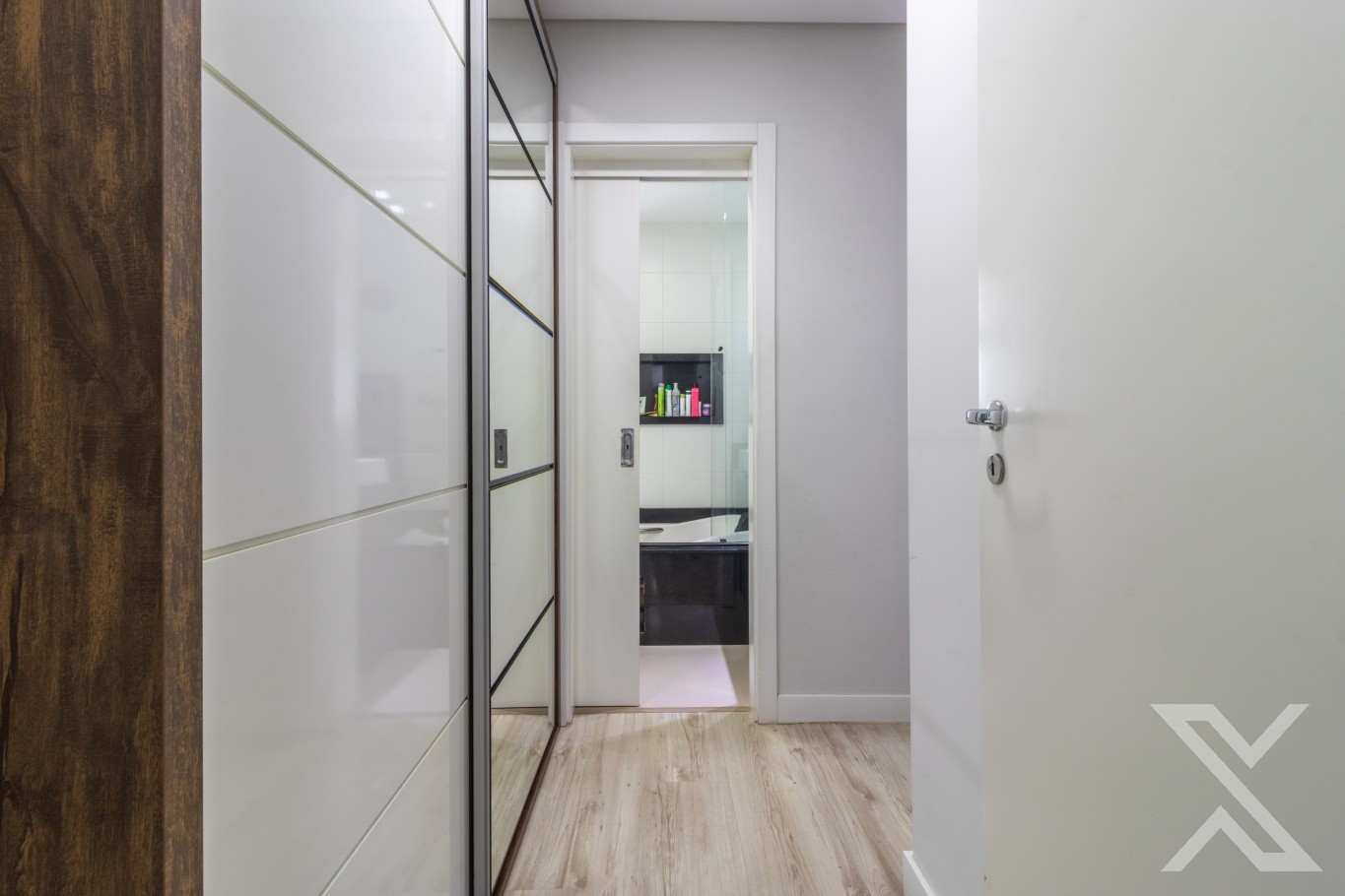 Acabamento em piso porcelanato, portas brancas, massa corrida, rodapés na cor branca, todos os ambientes rebaixados em gesso e esquadrias de alumínio na cor branca.