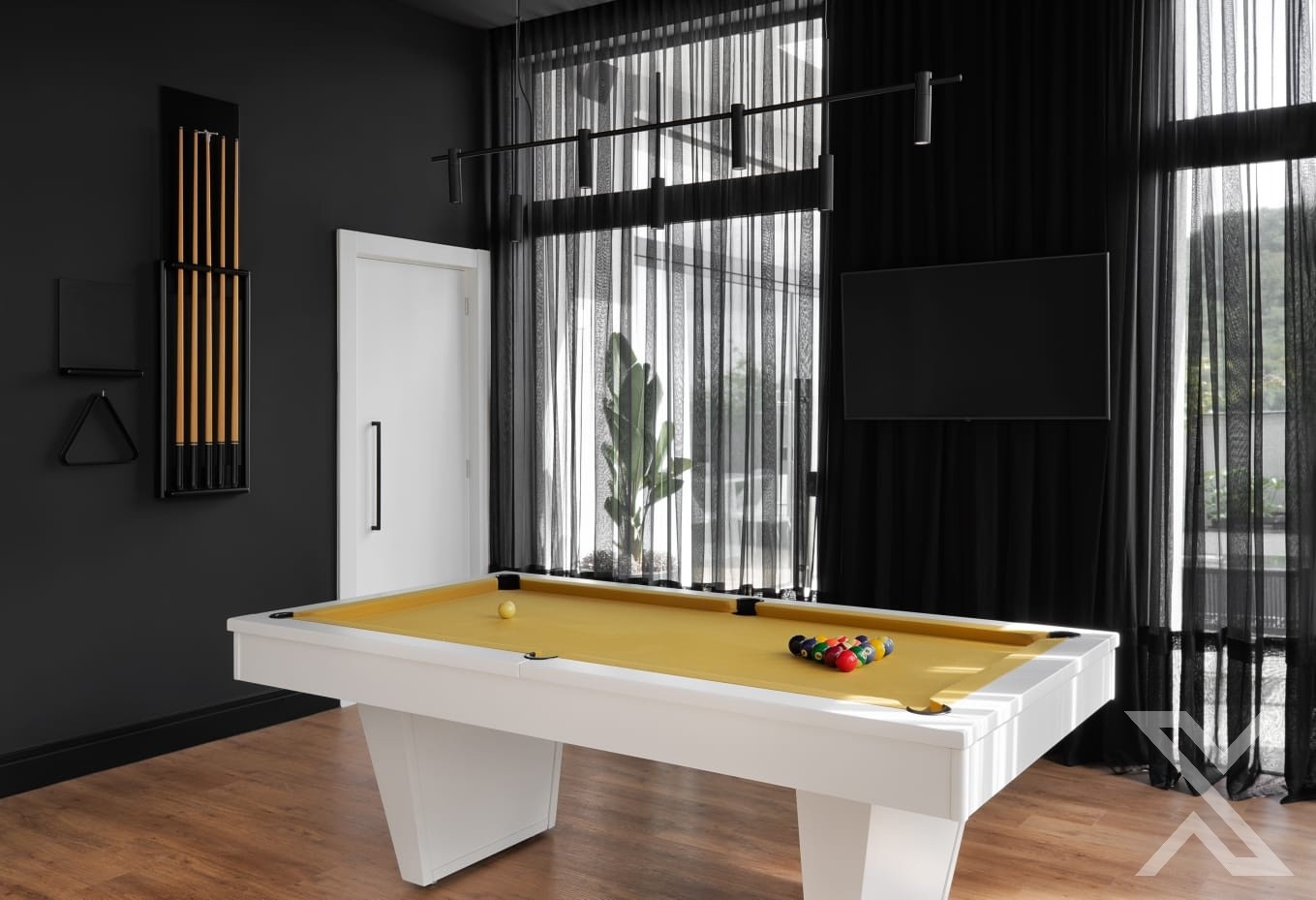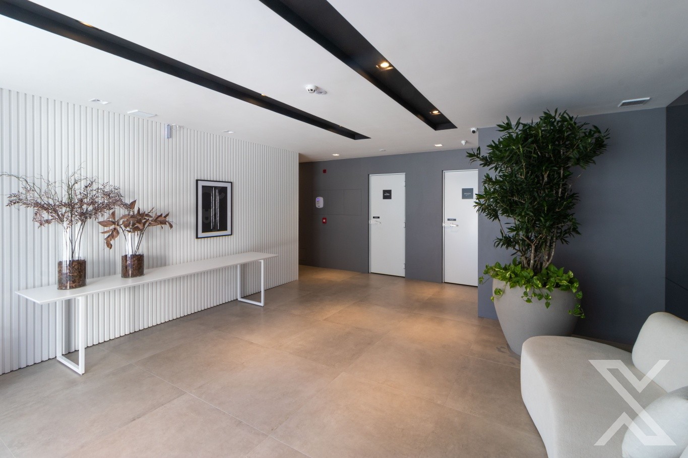 Hall e rooftop decorados.