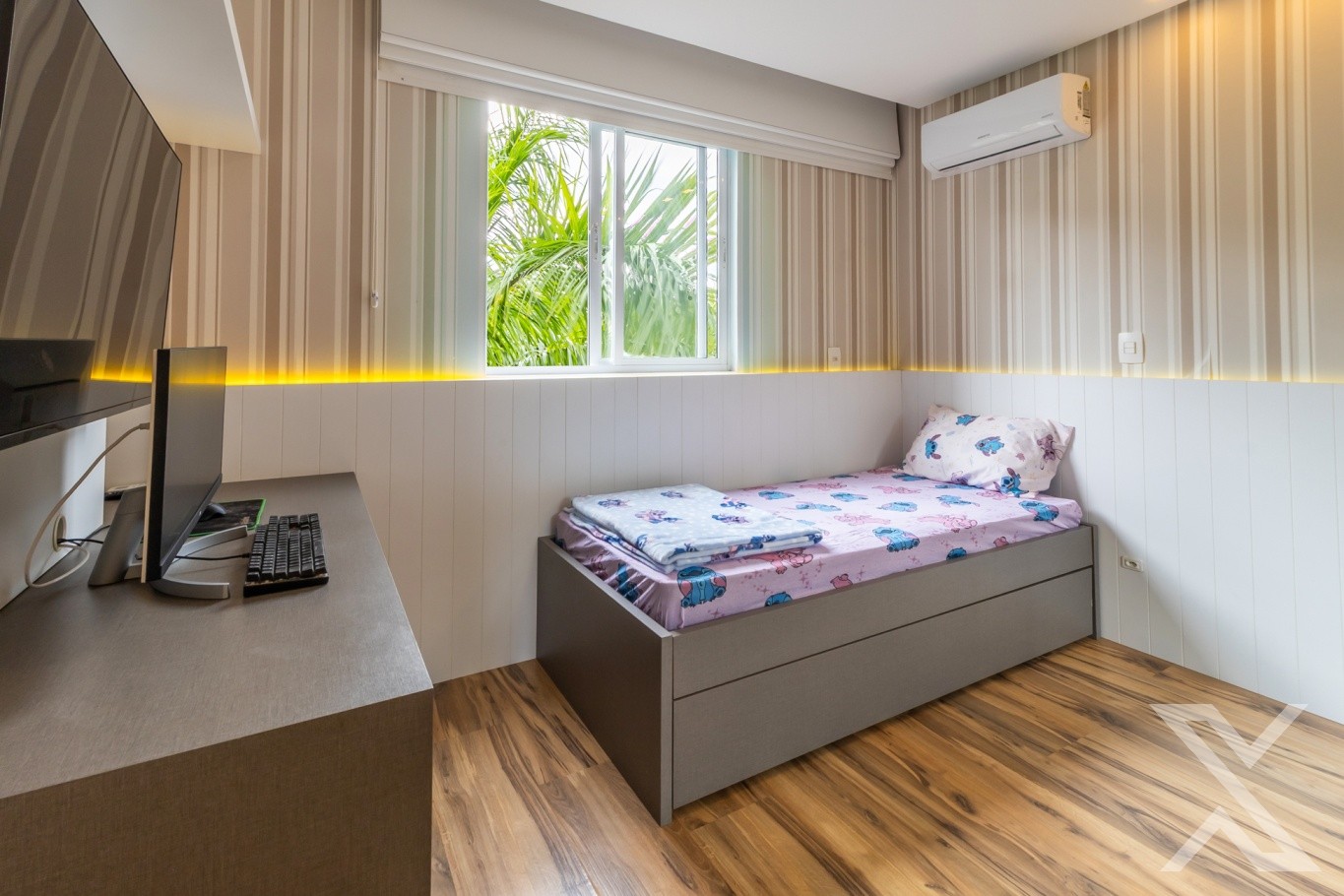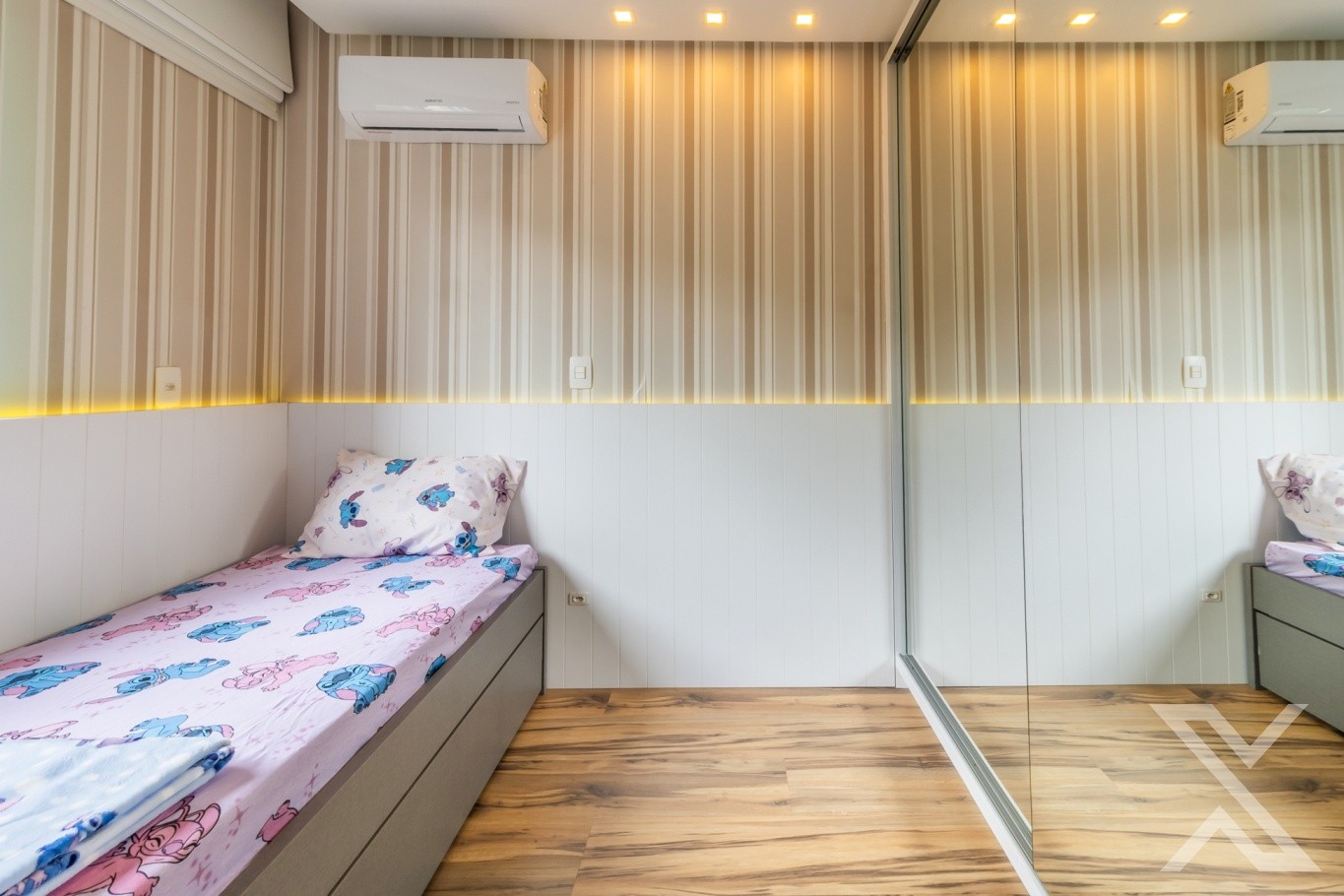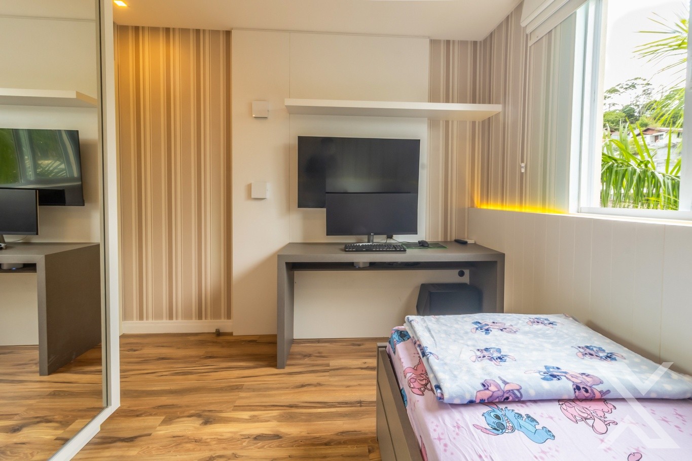 • 2 dormitórios, sendo 1 suíte (com modificação de planta: 1 dormitório transformado em sala de TV)