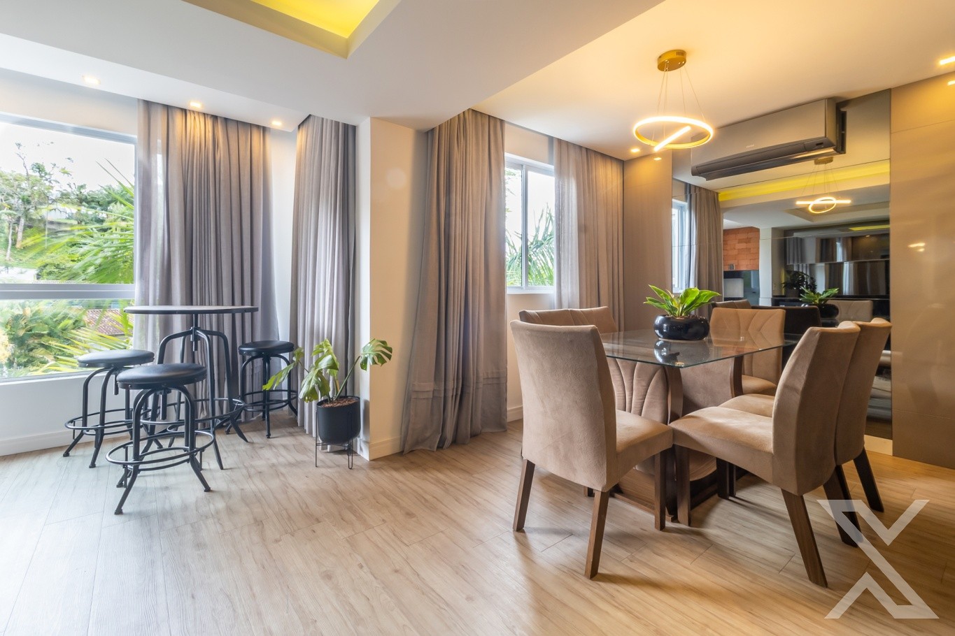 • Sala de estar e jantar integradas