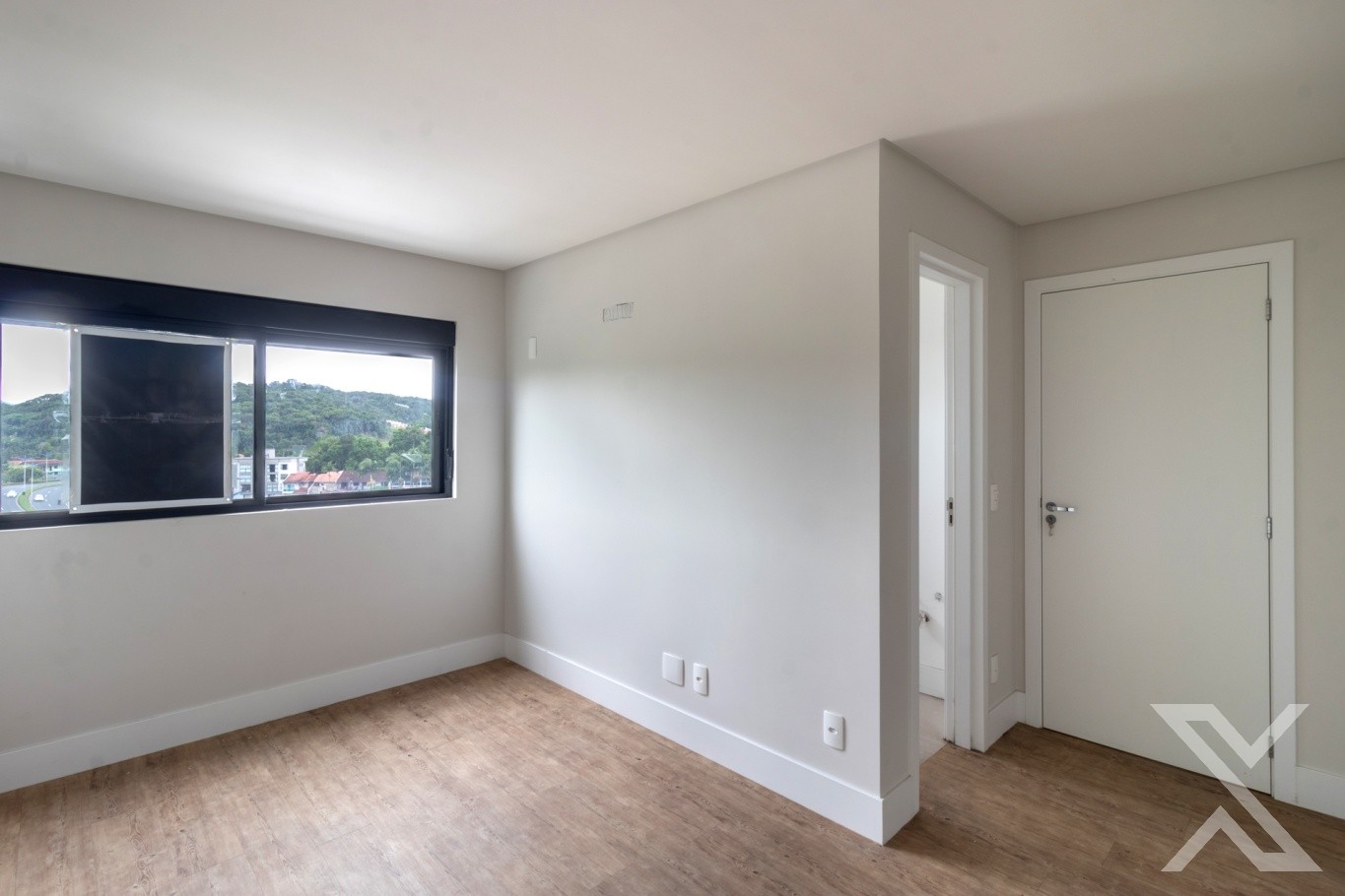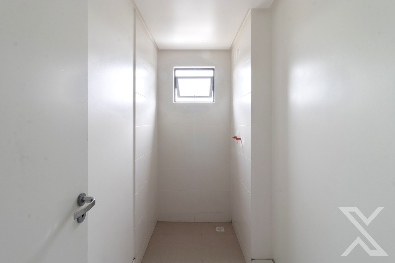 Revestimentos em piso vinílico, portas e rodapés em cor branca e chuveiros com aquecimento a gás.
