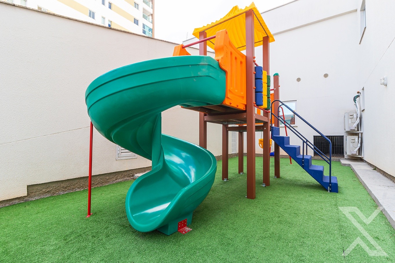 ESPAÇOS DE LAZER E CONFORTO: Condomínio oferece salão de festas e playground.