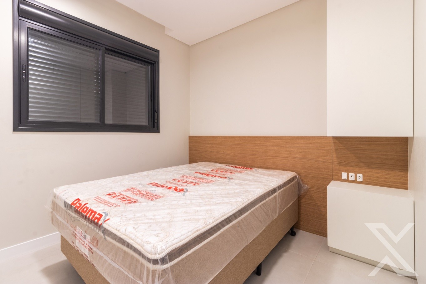 ● Quarto com roupeiro, ar-condicionado e cama box.