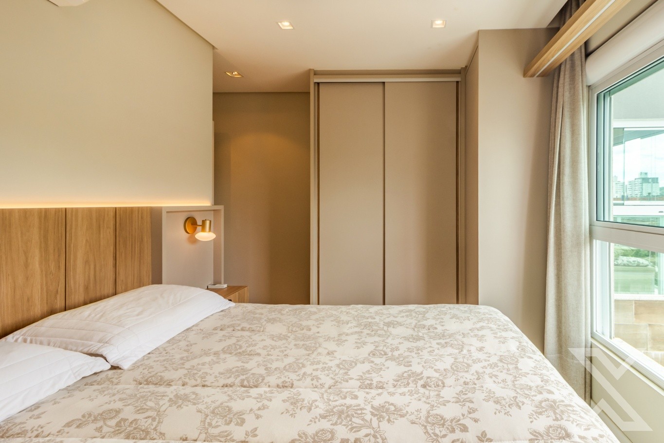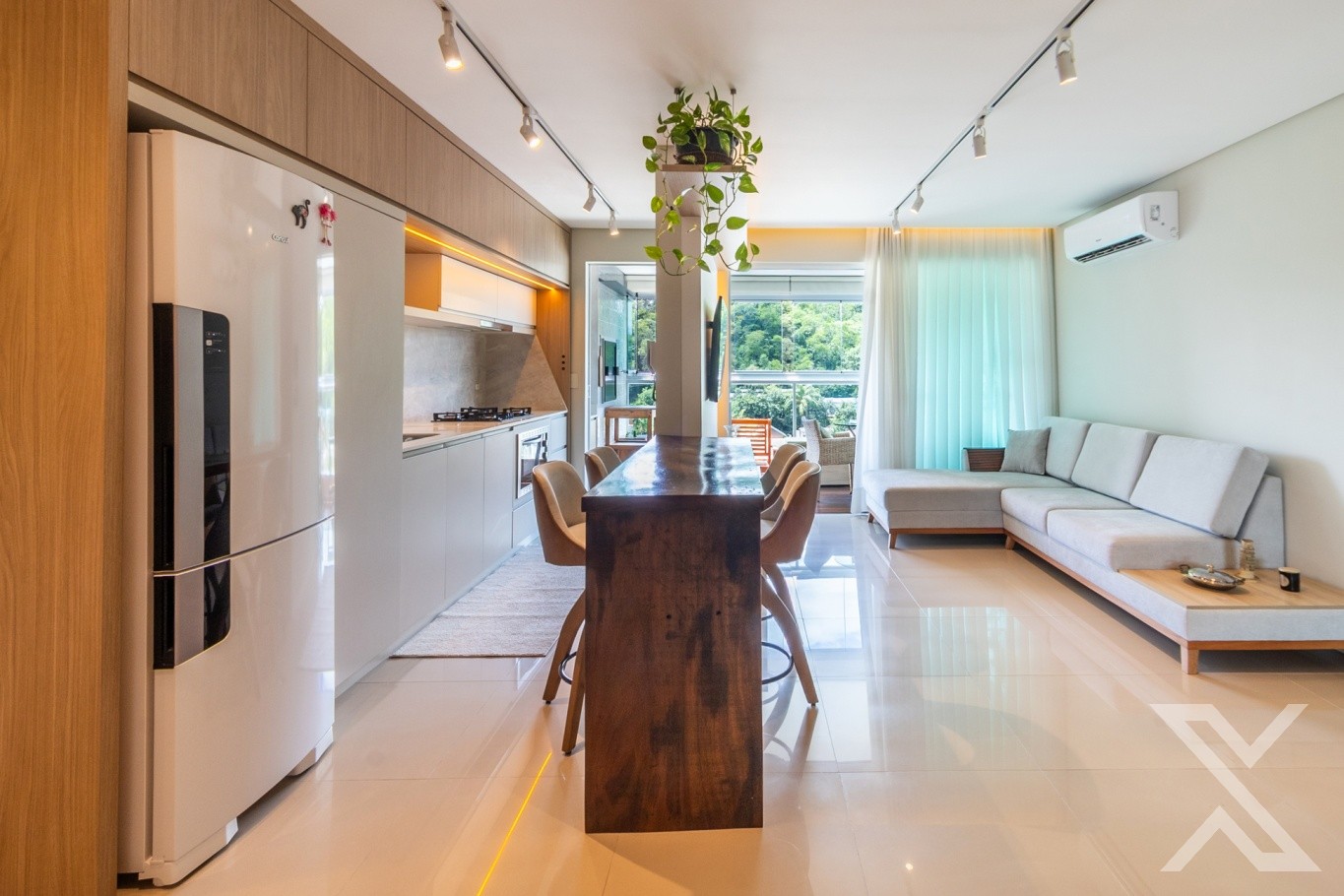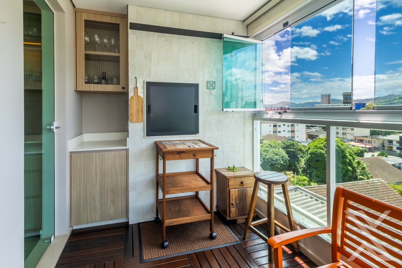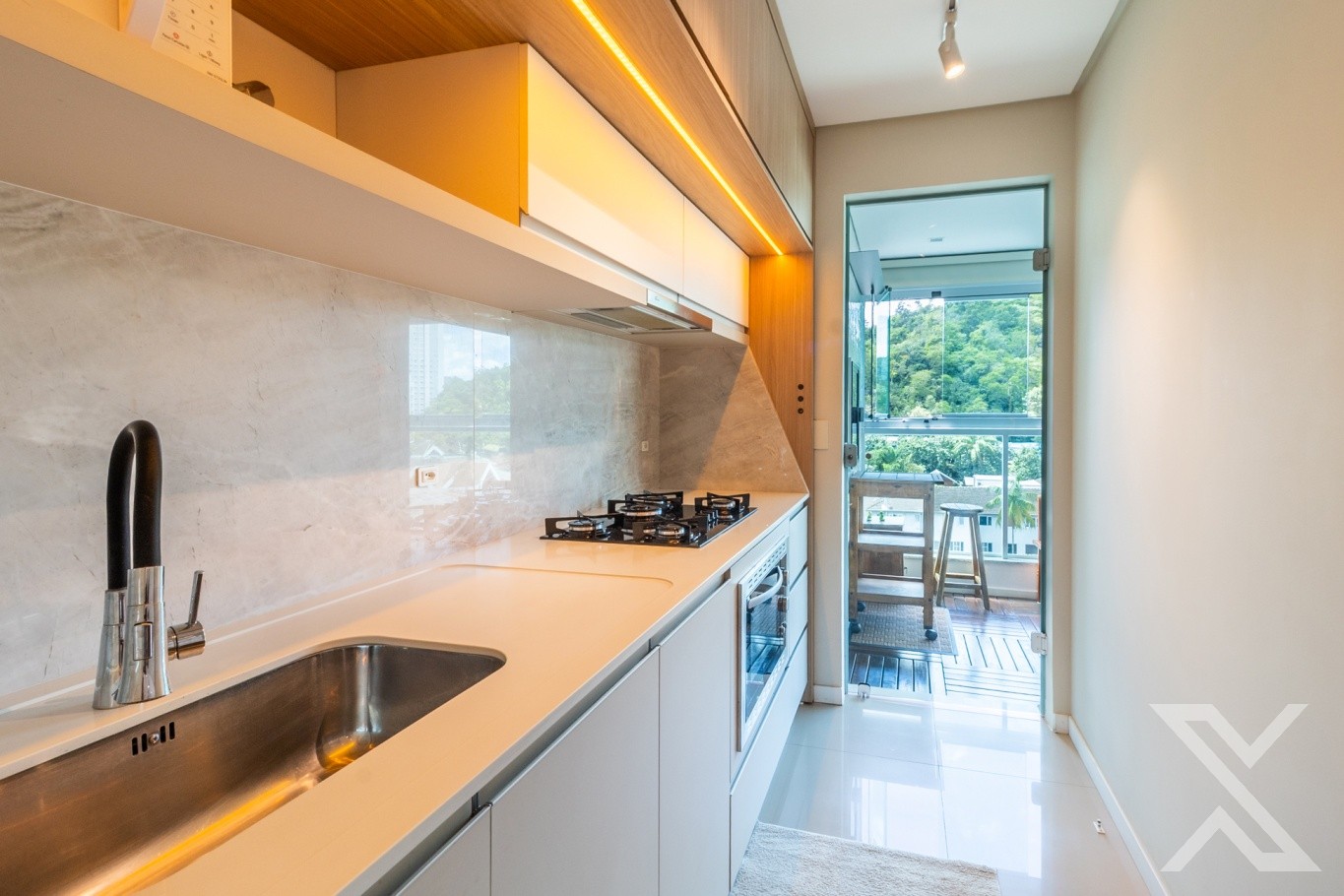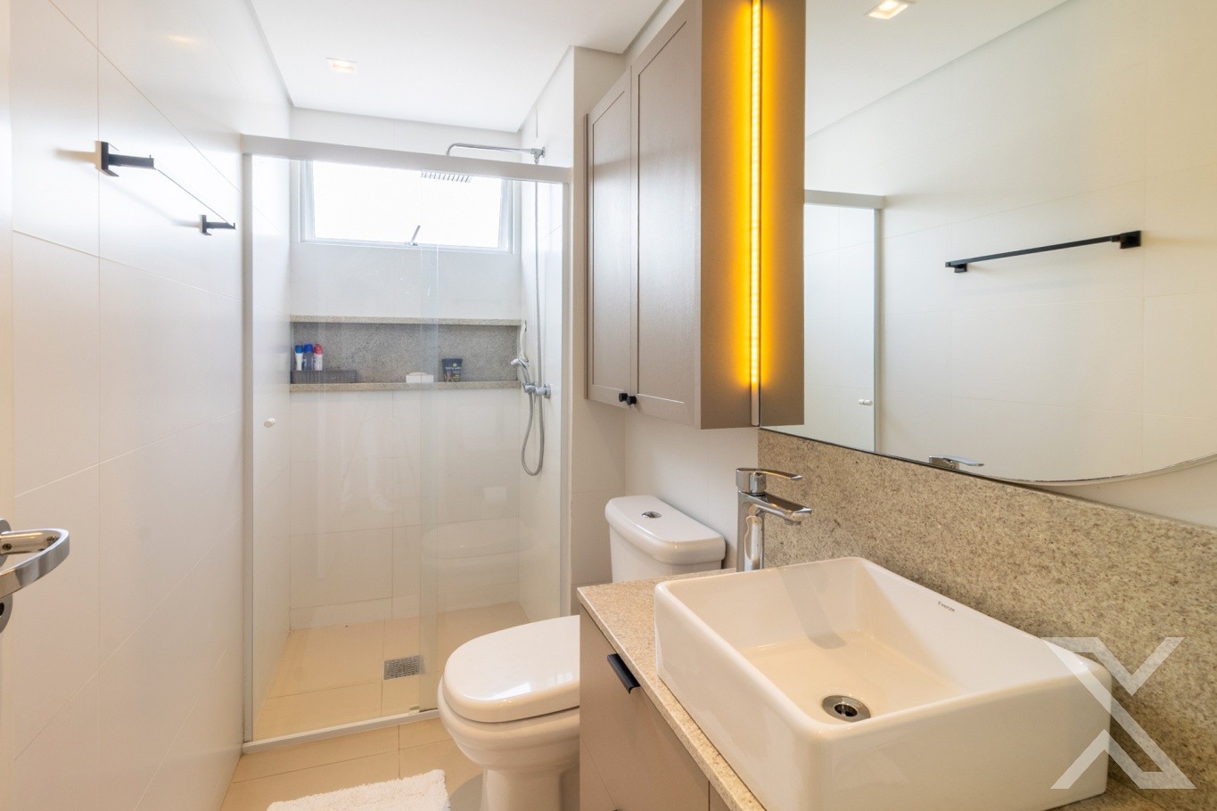 Revestimentos em porcelanato, rebaixo em gesso com iluminação indireta, sistema de água quente à gás, sacada com churrasqueira.