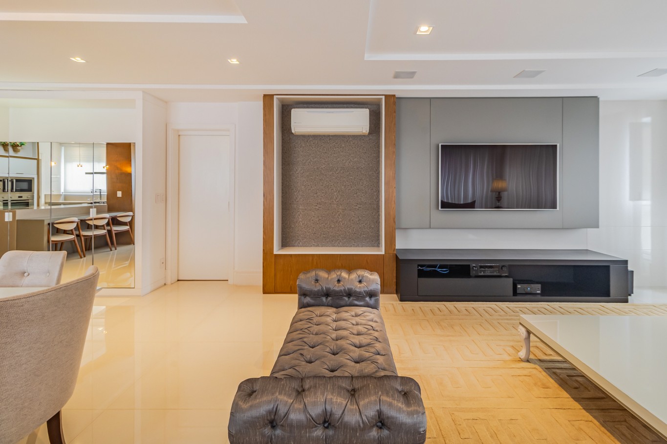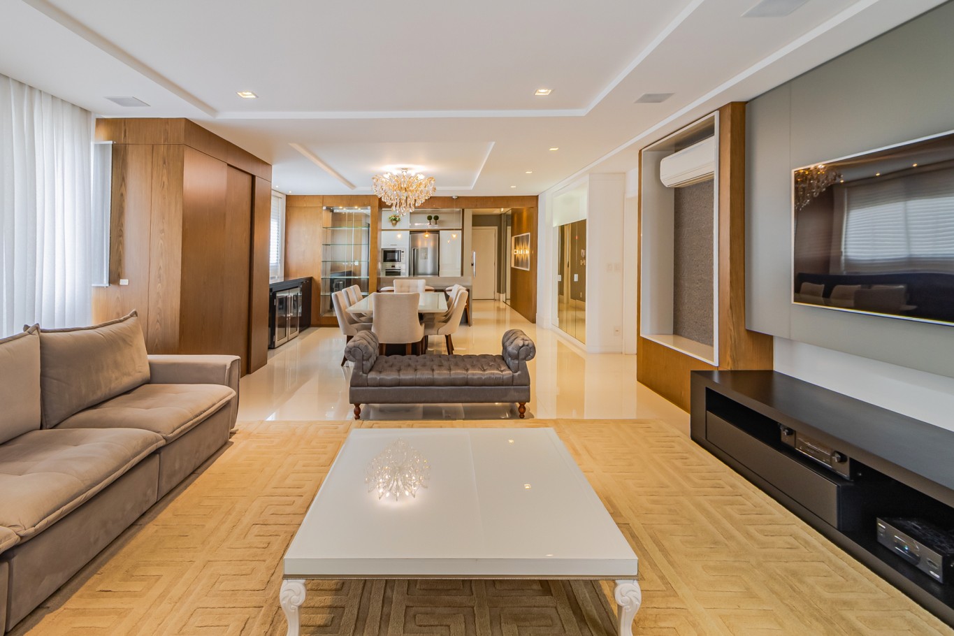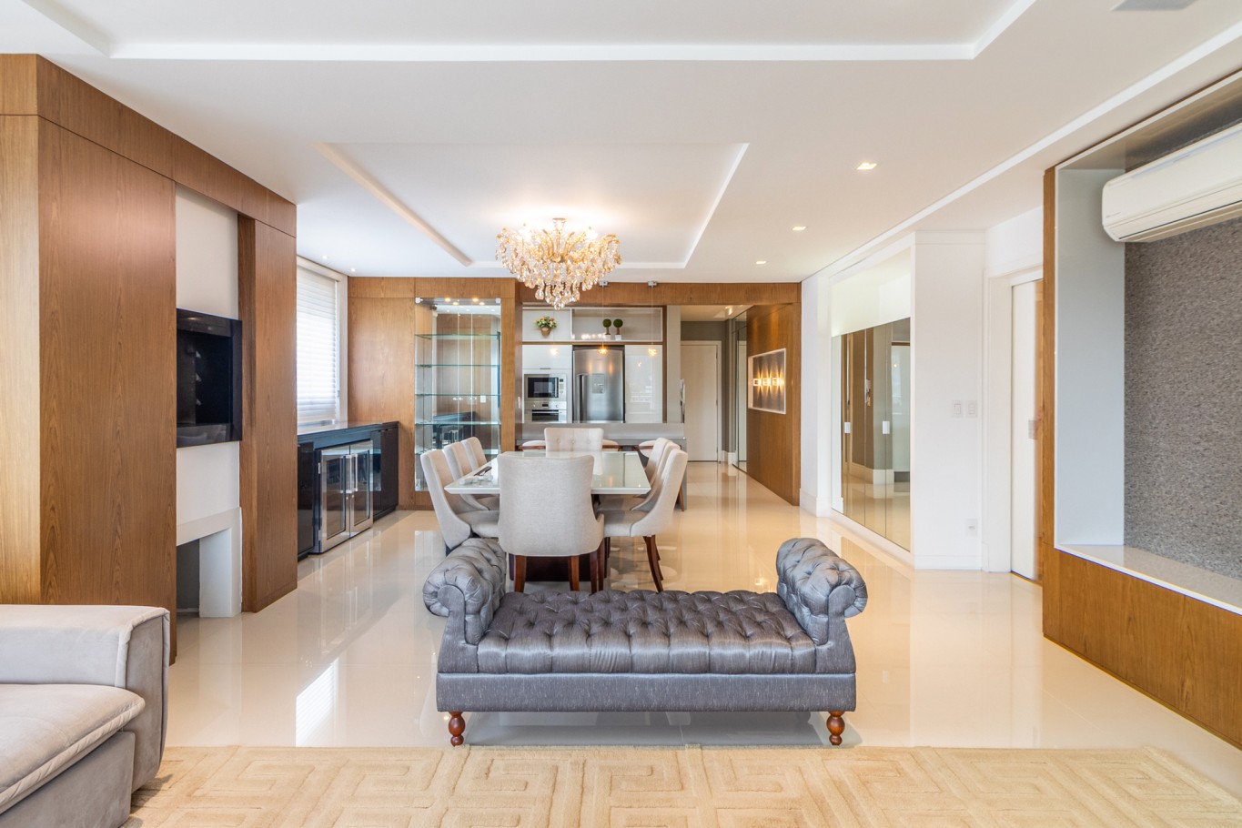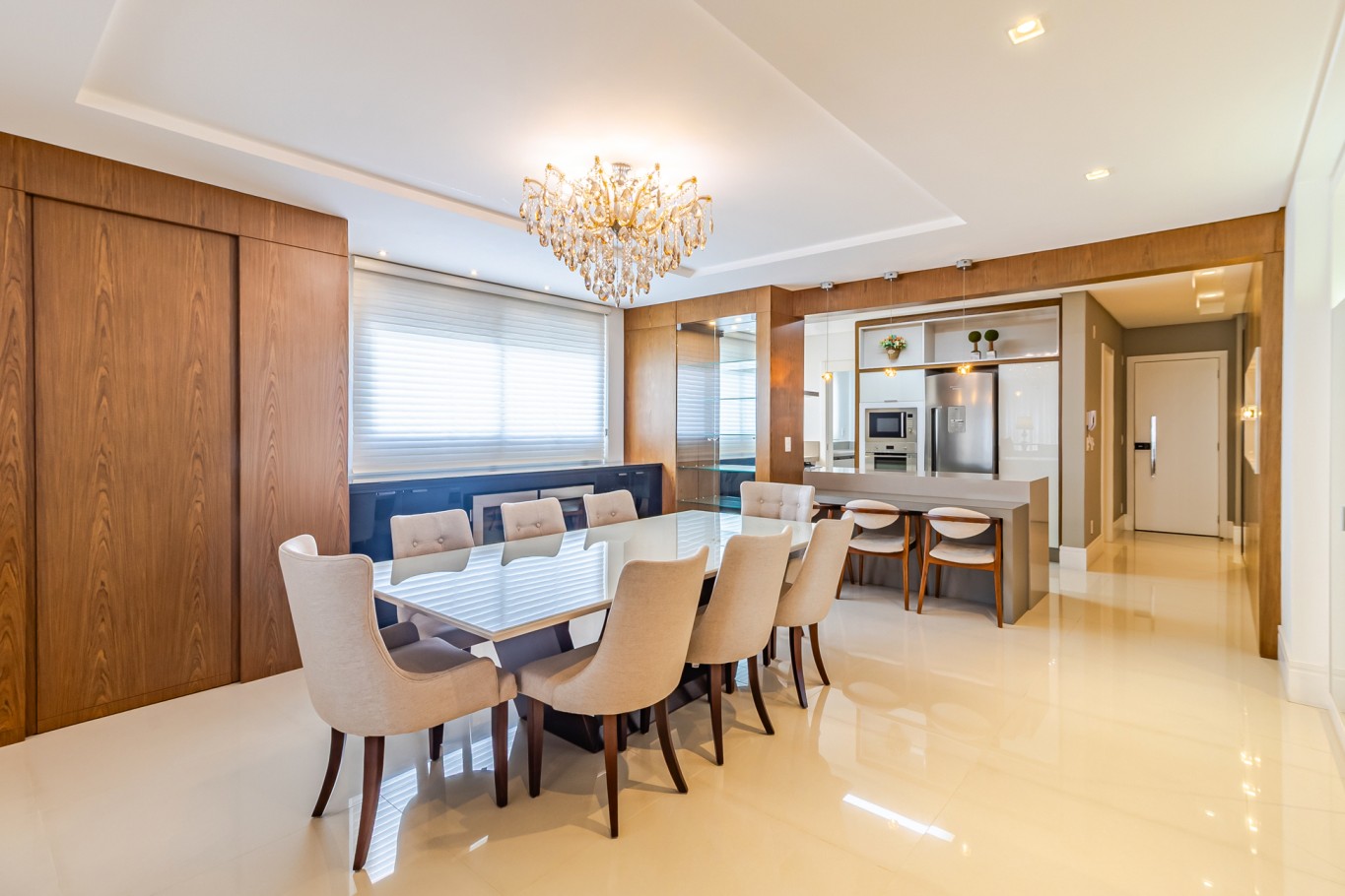 Living amplo, perfeito para receber amigos e familiares, com integração entre sala de estar e jantar, permitindo uma experiência de convívio elegante e confortável.