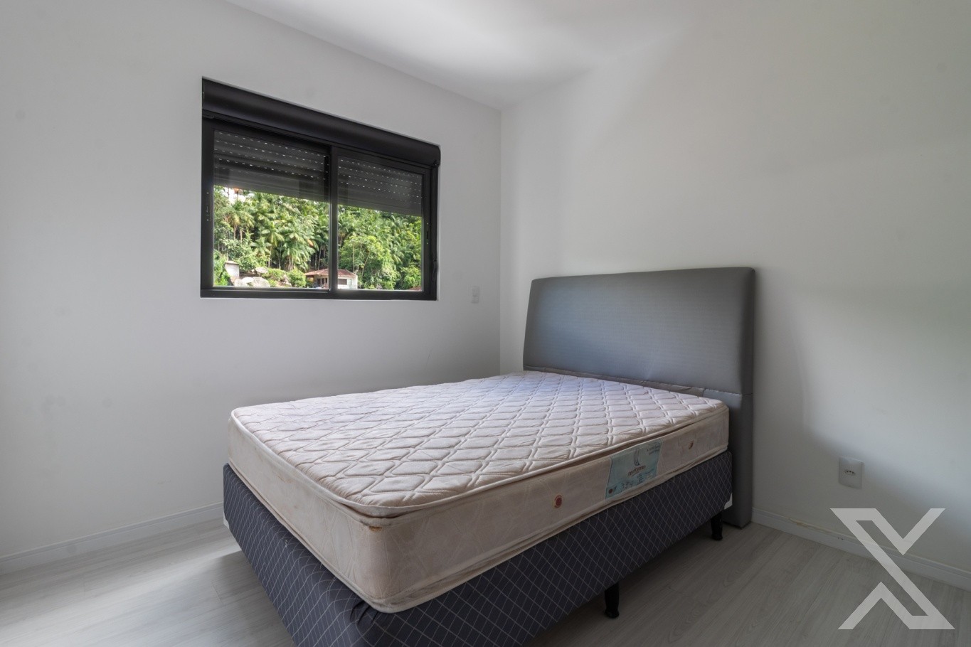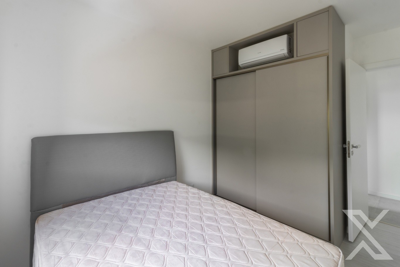 ● Quarto com piso laminado, roupeiro, cama box e ar-condicionado.