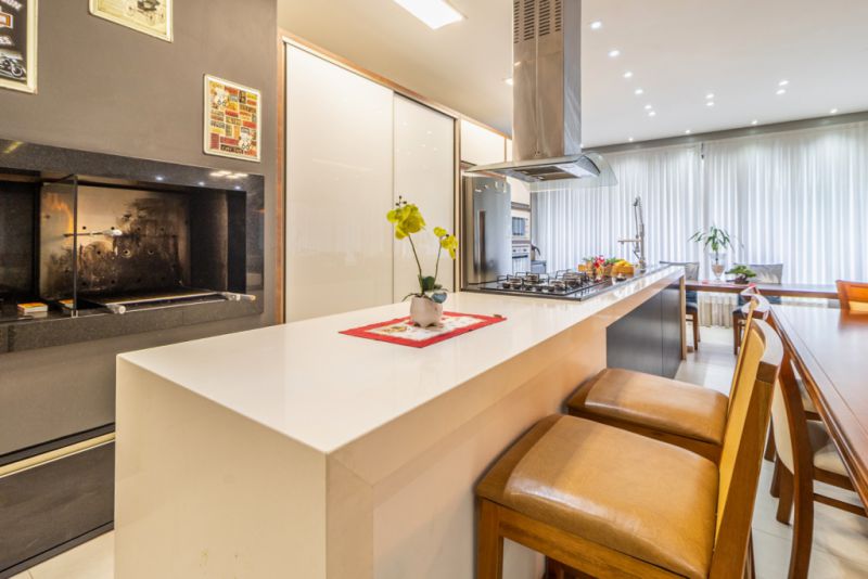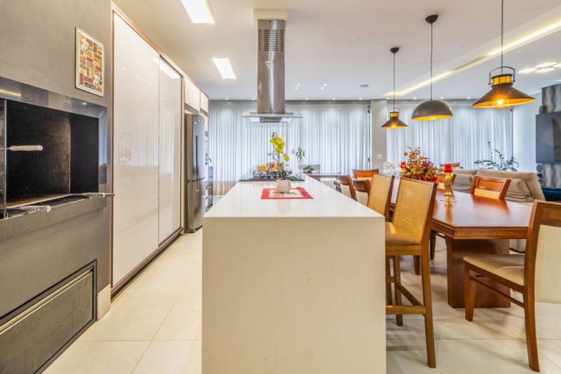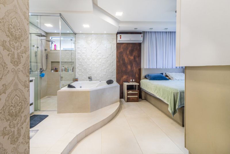 ACABAMENTOS: Revestimentos em porcelanato e laminado, forro rebaixado em gesso com iluminação personalizada, sistema de água quente e detalhes em mármore, vidro, madeira.