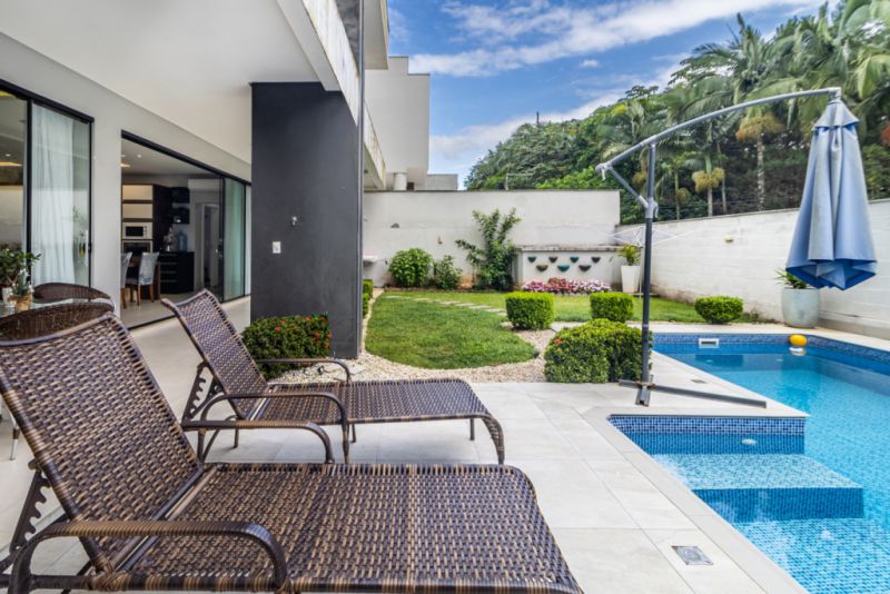DETALHES DO IMÓVEL: Área construída: 290m²; Terreno: 365m². Casa com 02 pavimentos. Possui 03 suítes, sendo uma master com closet e hidromassagem, sala e cozinha integrados em um ambiente amplo com mesa de sinuca/ping pong e churrasqueira à carvão com espeto rotativo e exaustor, 04 banheiros ao todo, piscina, jardim frontal e nos fundos, área de serviço externa e independente. Além de 03 vagas de garagem cobertas. Possui placa solar de energia, aquecimento solar da água, piscina tratada com sal, possui uma cisterna (captação de água da chuva) de 11 mil litros.