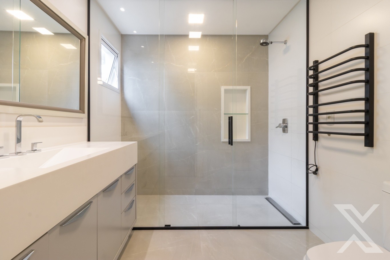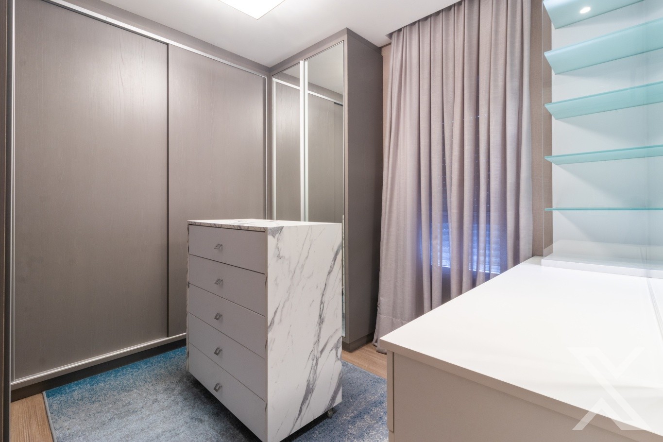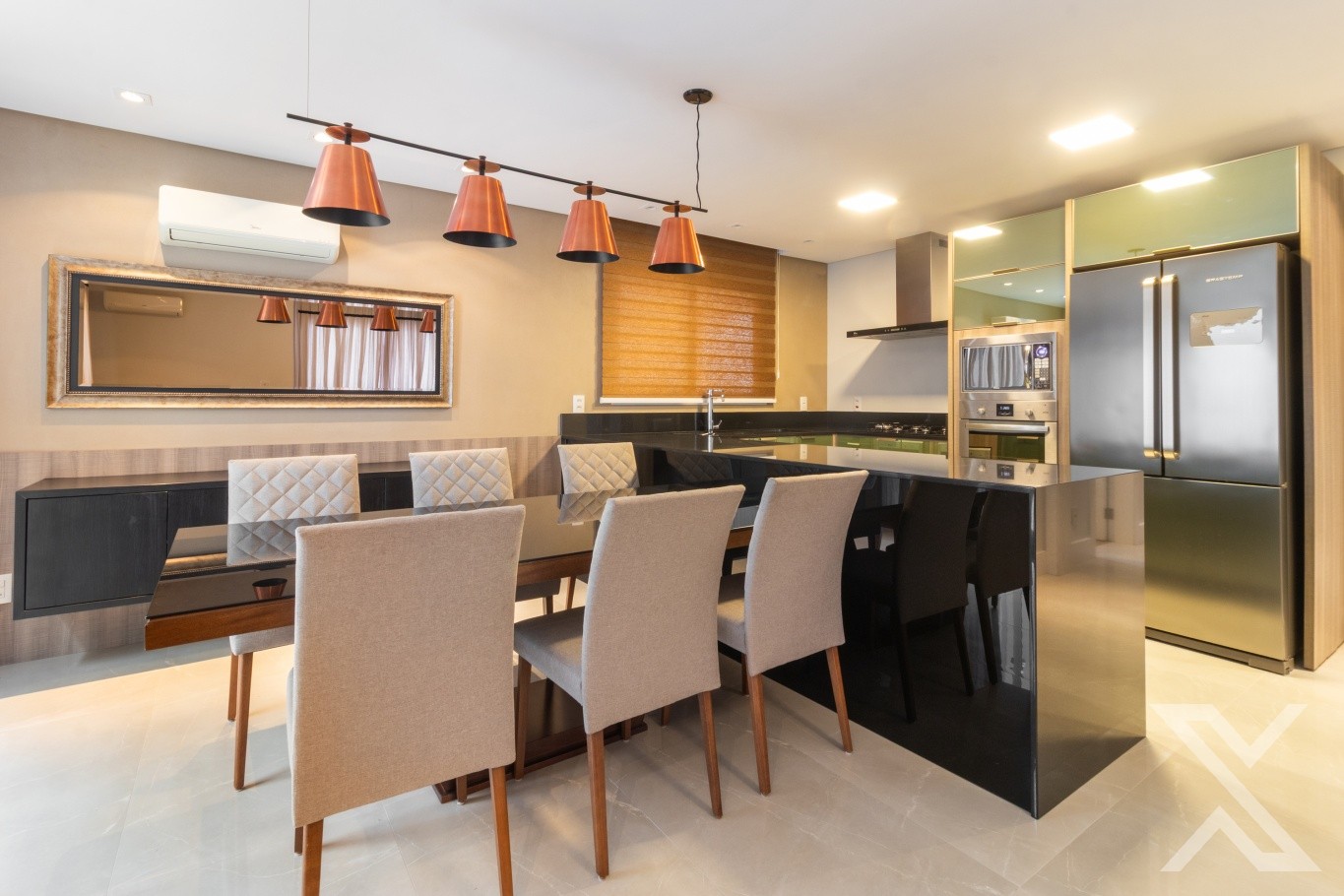 Revestimentos em porcelanato nas áreas sociais e áreas íntimas vinílico, forro rebaixado em gesso com iluminação personalizada, sistema de água quente e detalhes em mármore, vidro, madeira.