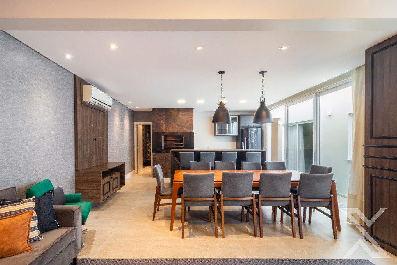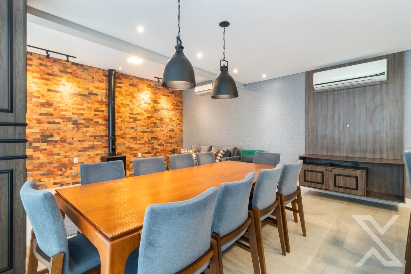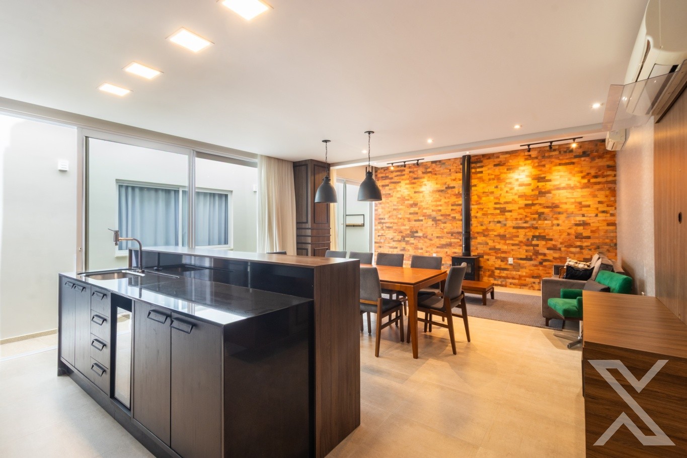 Com 3 dormitórios sendo 1 suíte, 1 dormitório foi feito escritório com fácil reversão, sala de tv e jantar em conceito aberto, cozinha, área de serviço e garagem para 4 carros.