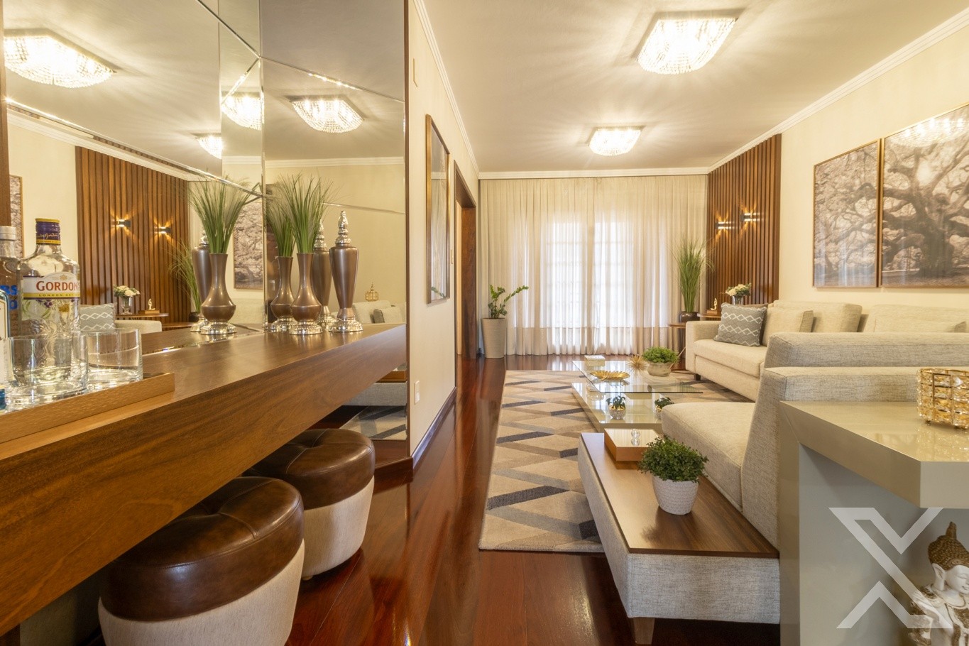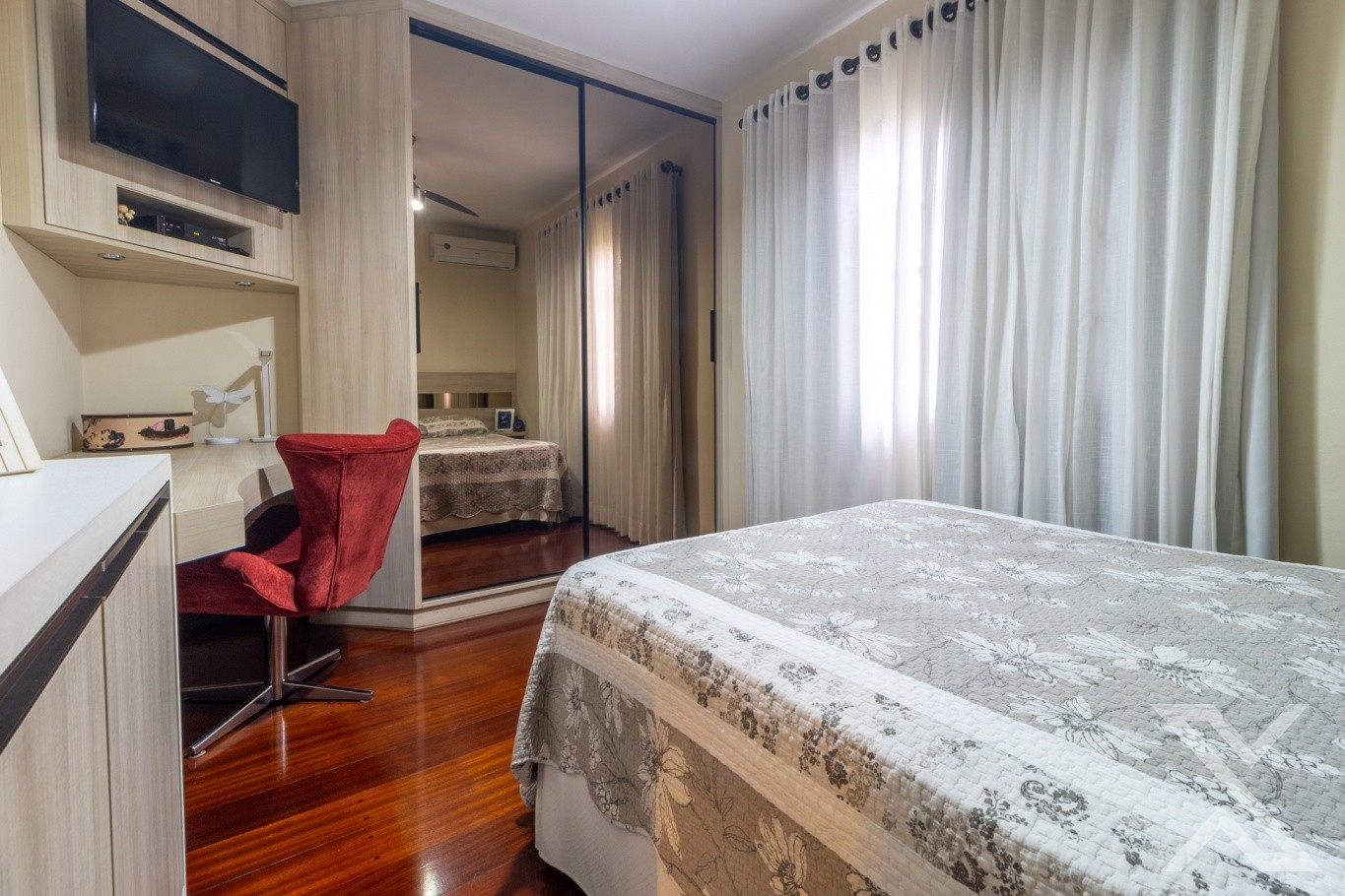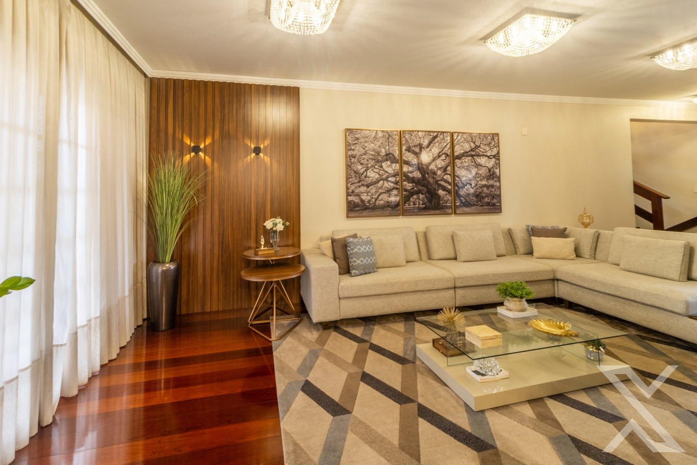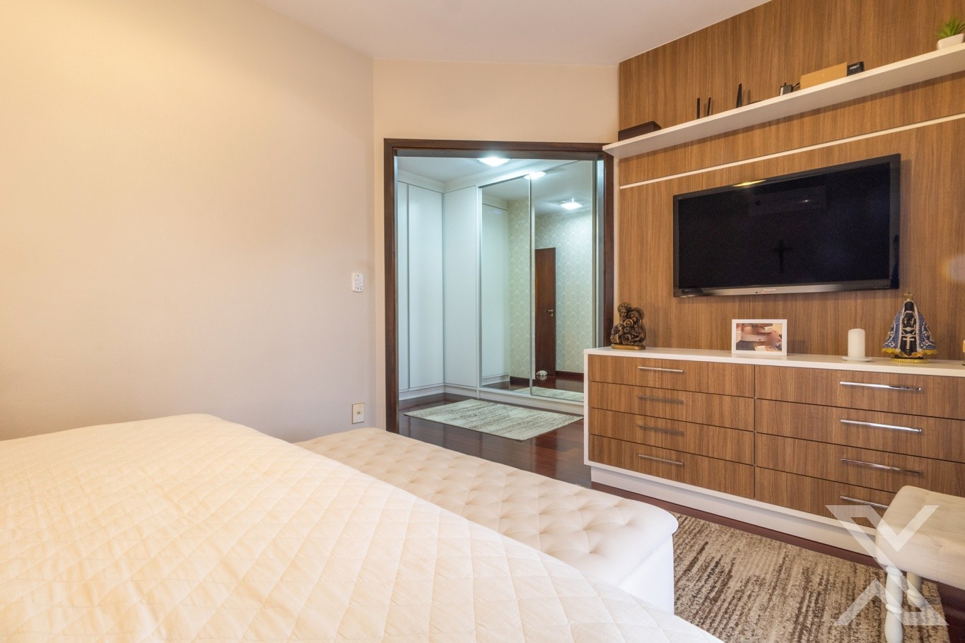 Revestimentos em madeira, forro rebaixado em gesso com iluminação personalizada, aquecimento de água a gás.