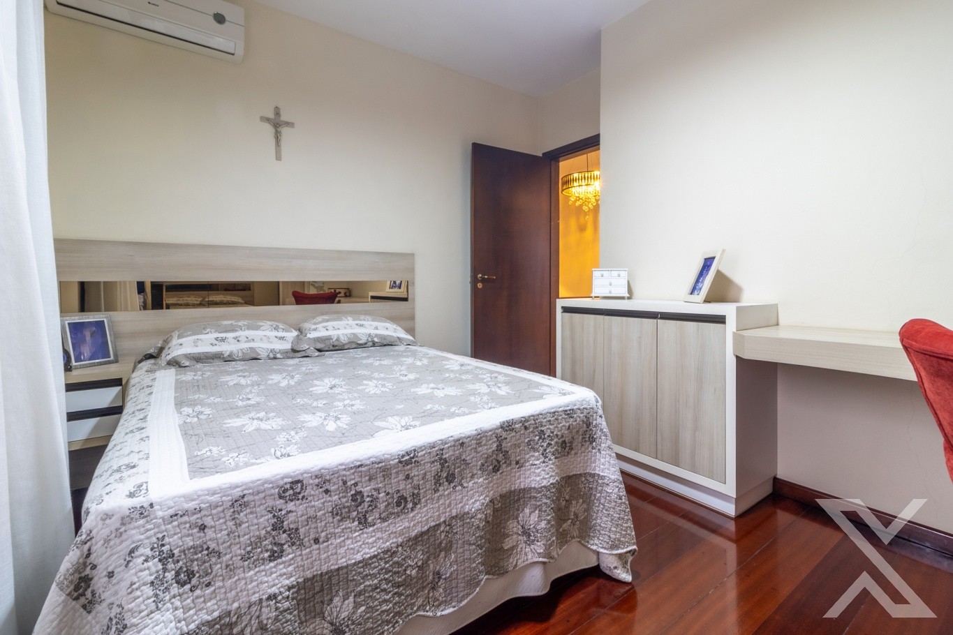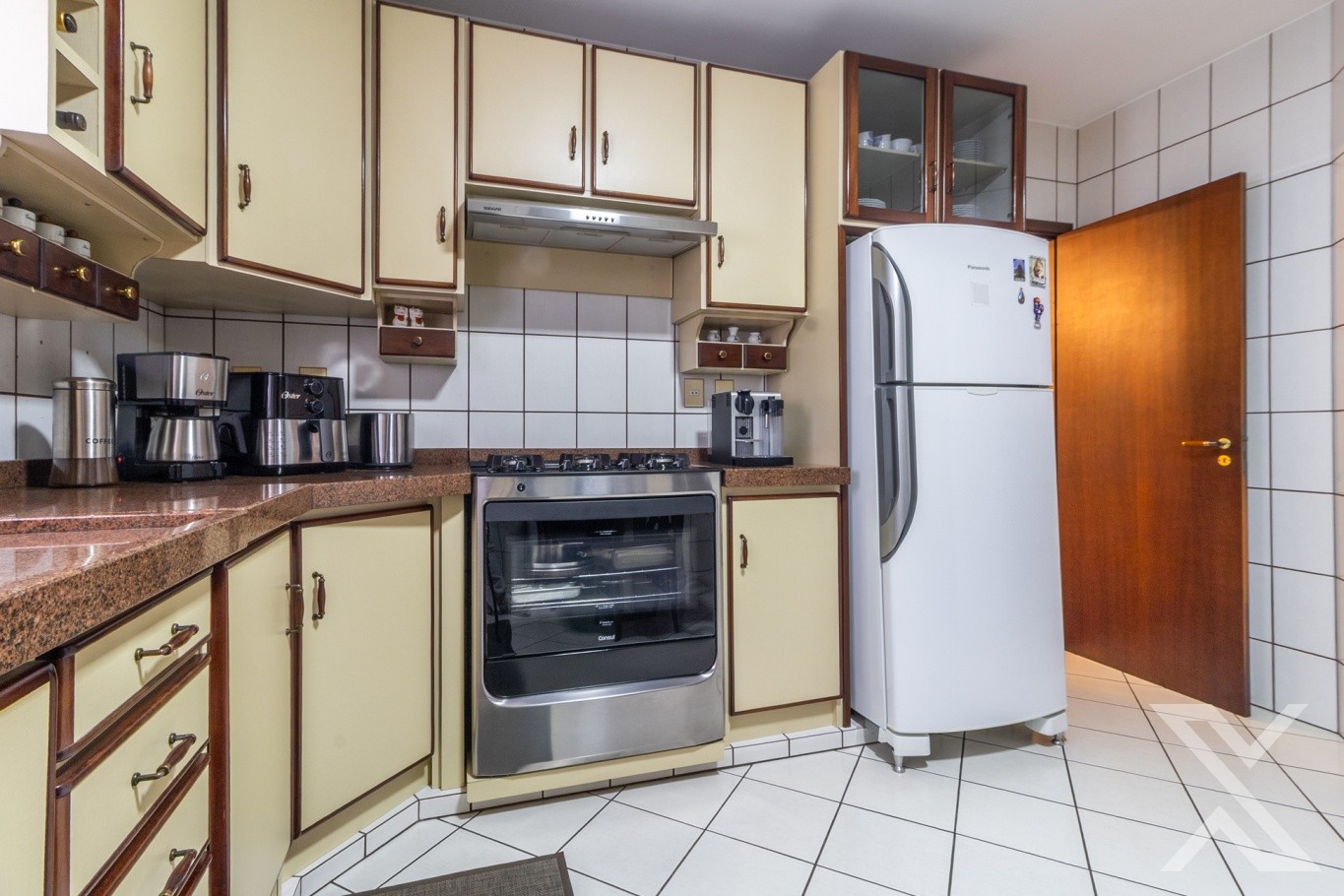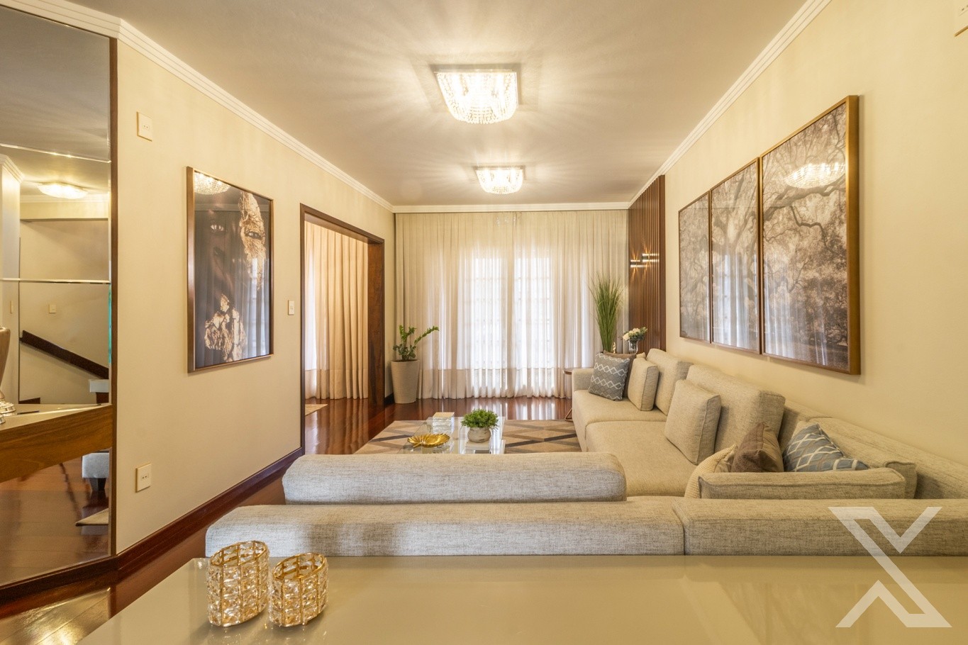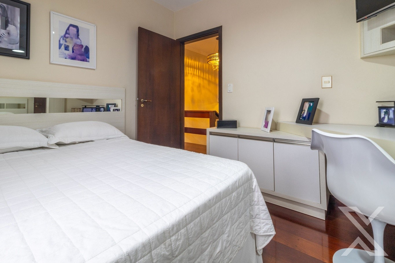 Revestimentos em madeira, forro rebaixado em gesso com iluminação personalizada, aquecimento de água a gás.